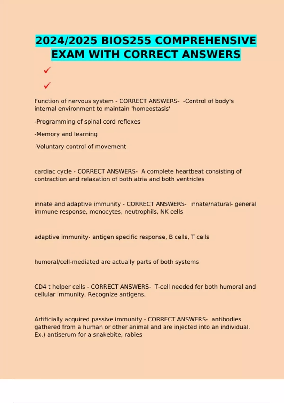 2024/2025 BIOS255 COMPREHENSIVE EXAM WITH CORRECT ANSWERS