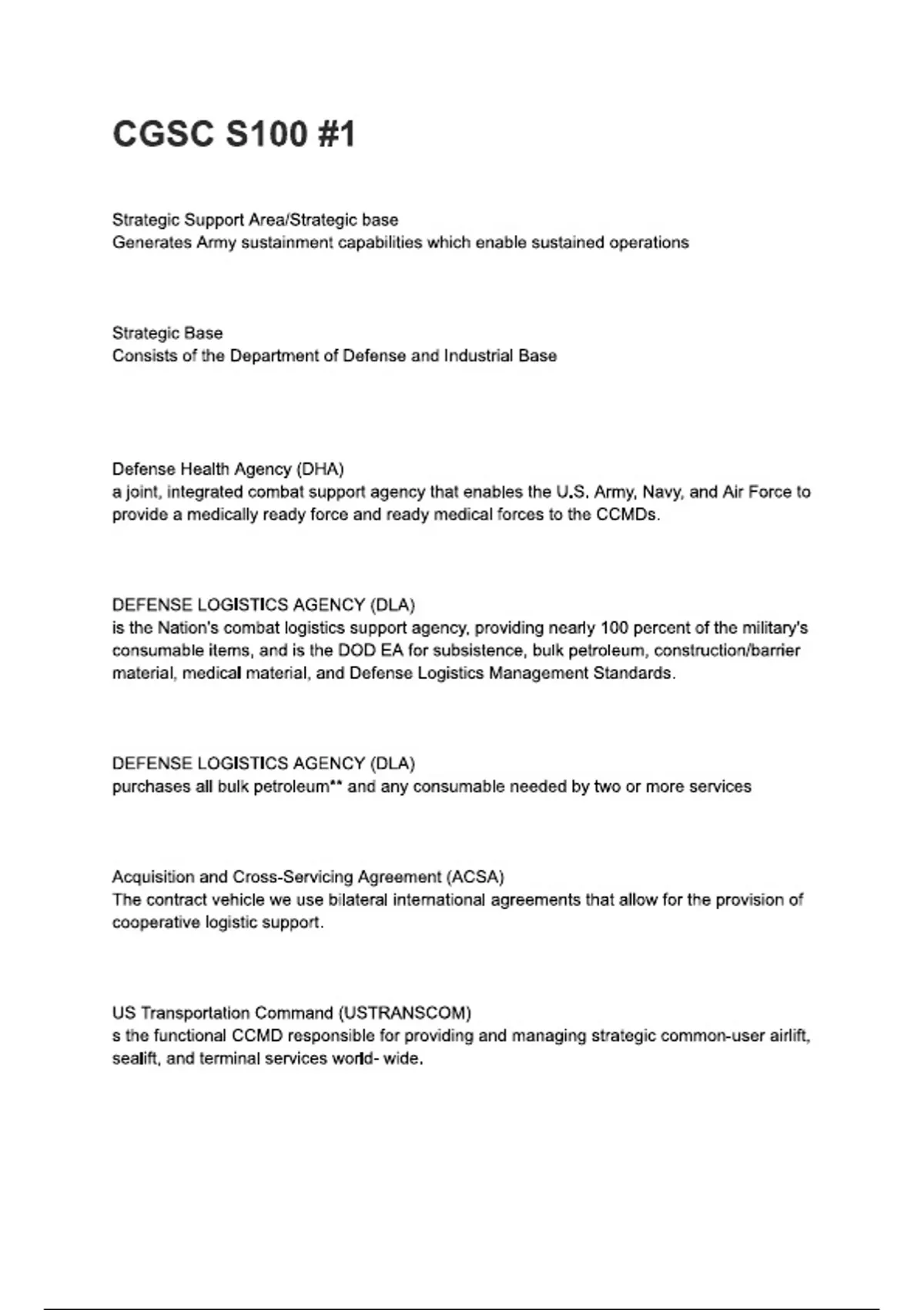 CGSC S100 -1 Review Questions and answers
