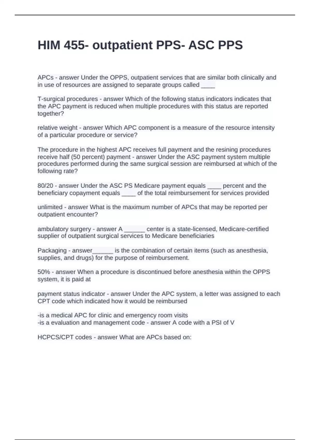 APCs - answer Under the OPPS, outpatient services that are similar both clinically and
