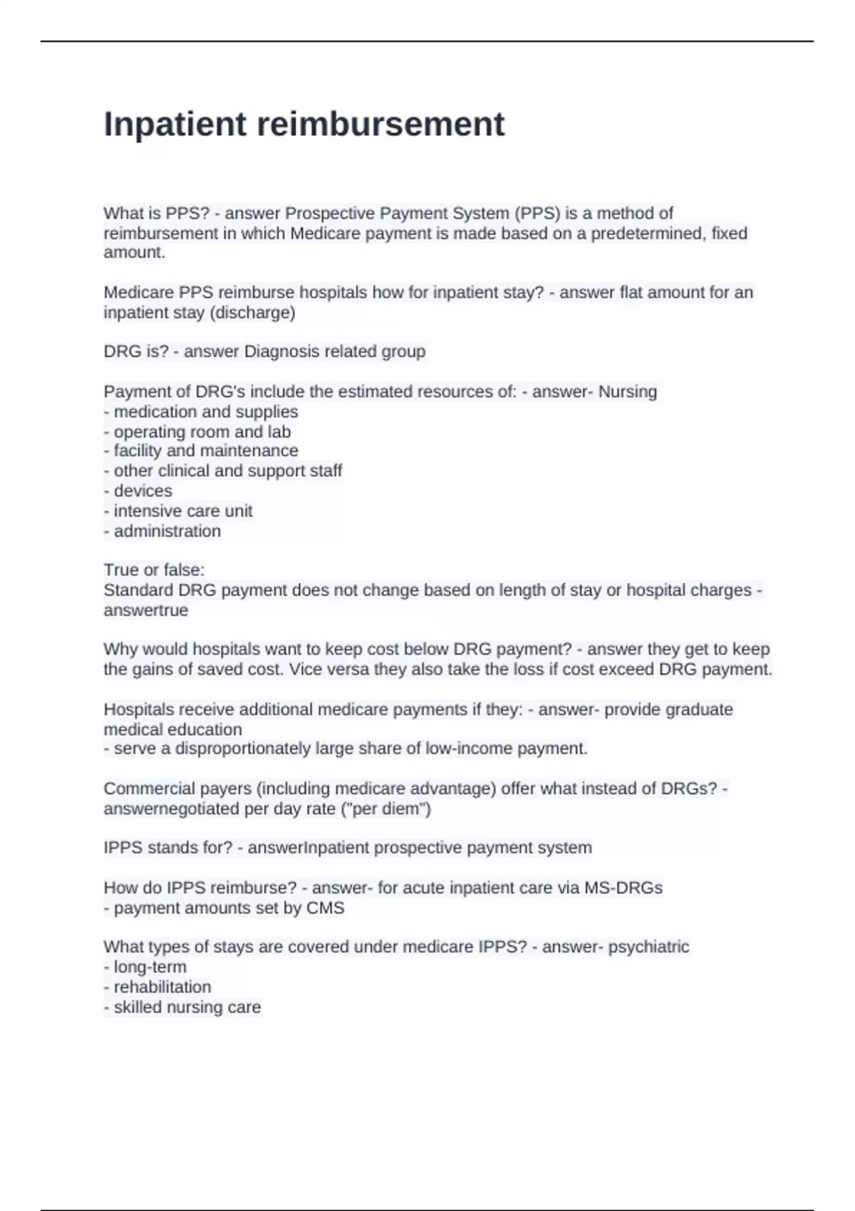 How do IPPS reimburse? - answer- for acute inpatient care via MS-DRGs