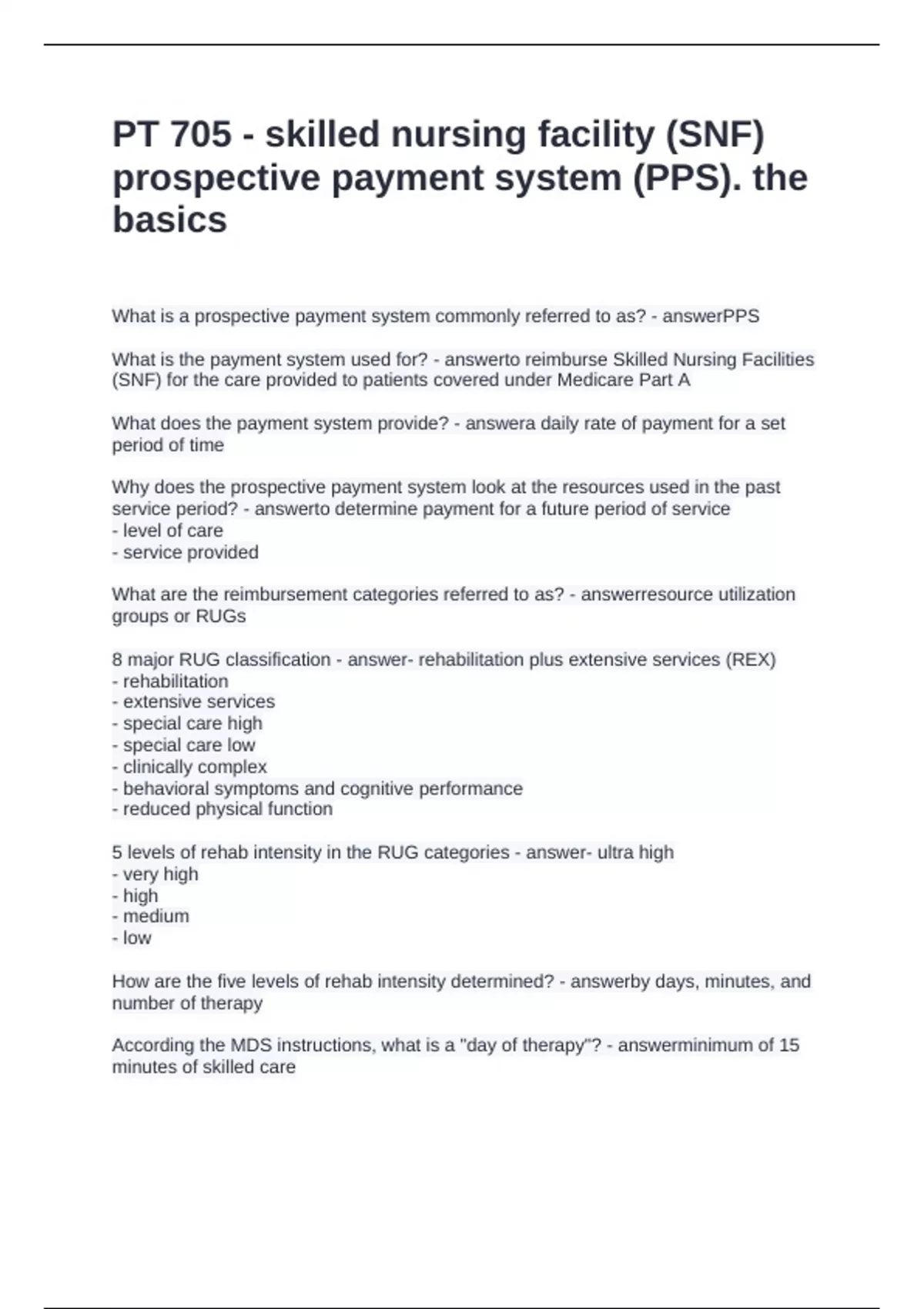 5 levels of rehab intensity in the RUG categories - answer- ultra high