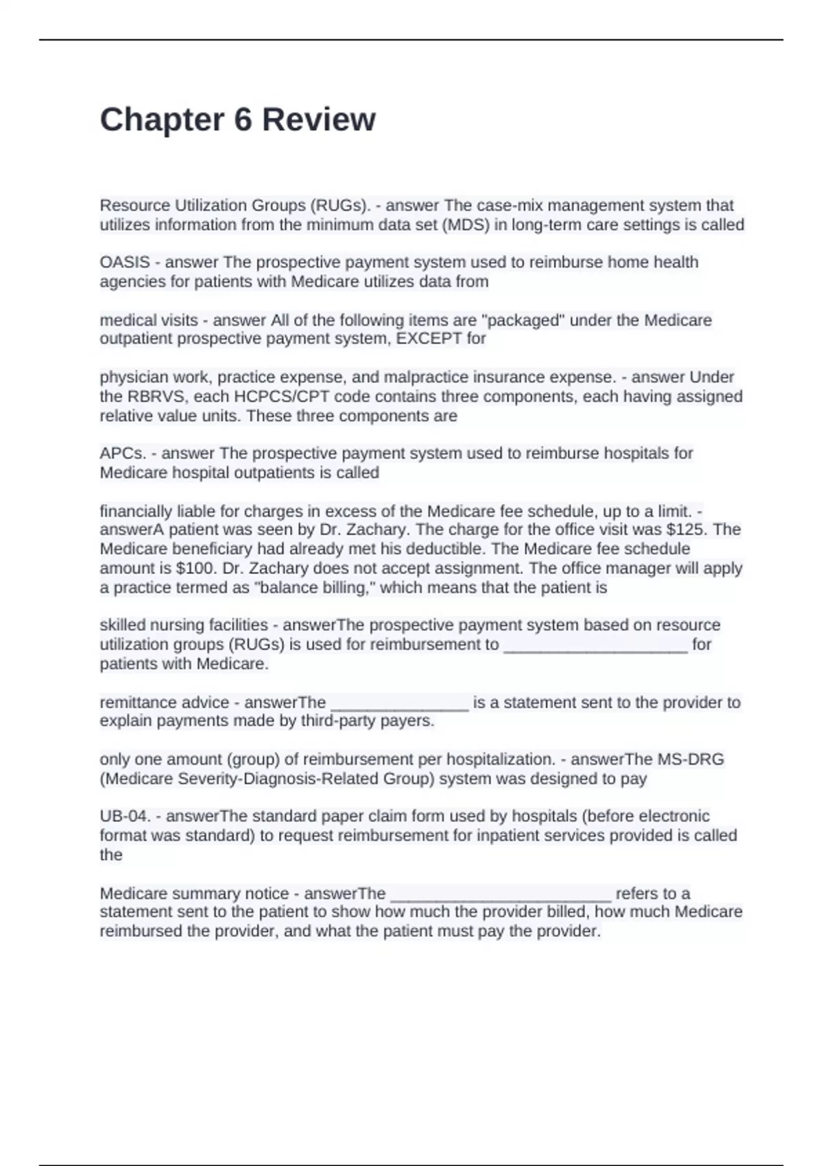 Medicare summary notice - answerThe ________________________ refers to a