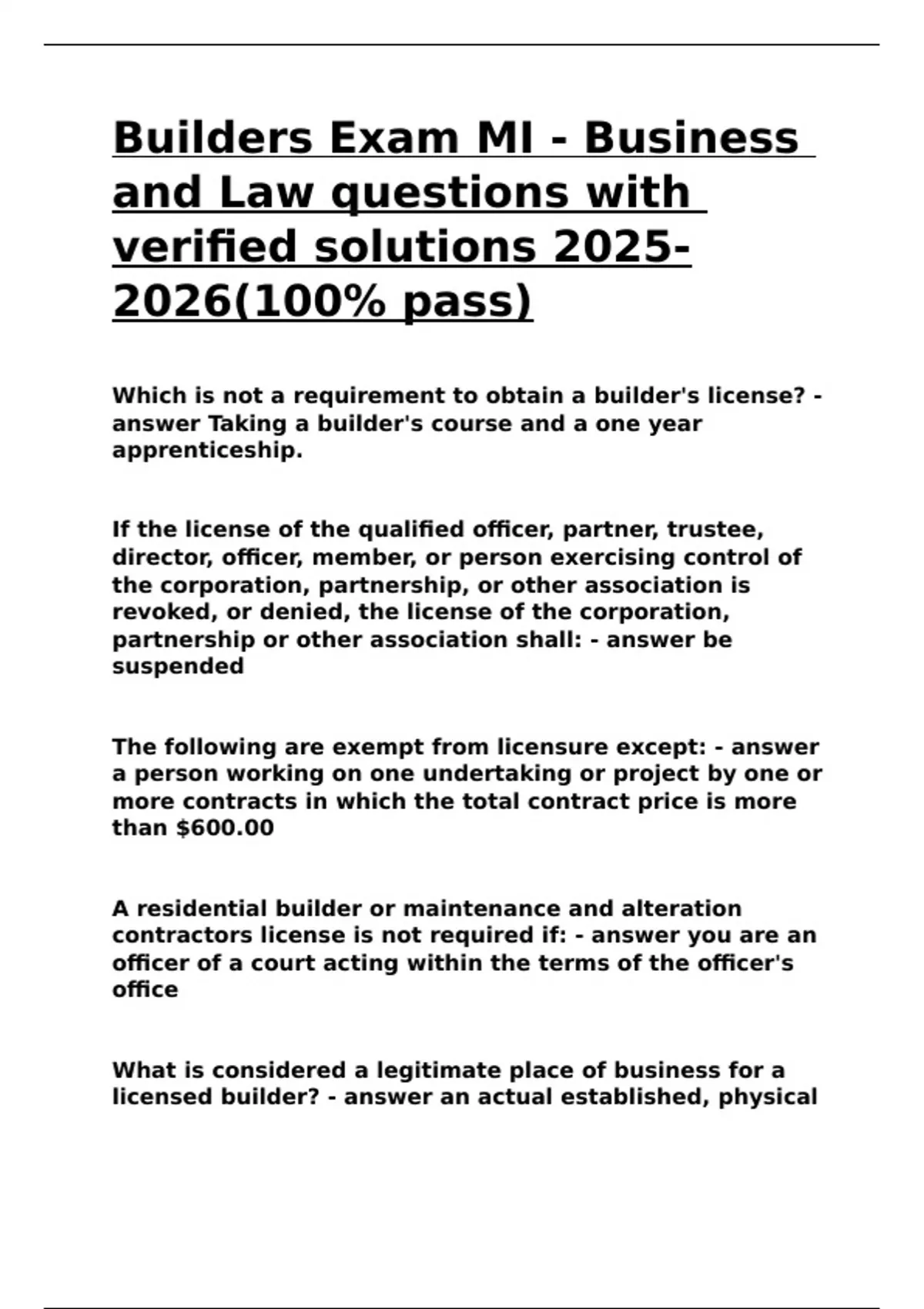 Builders Exam MI - Business