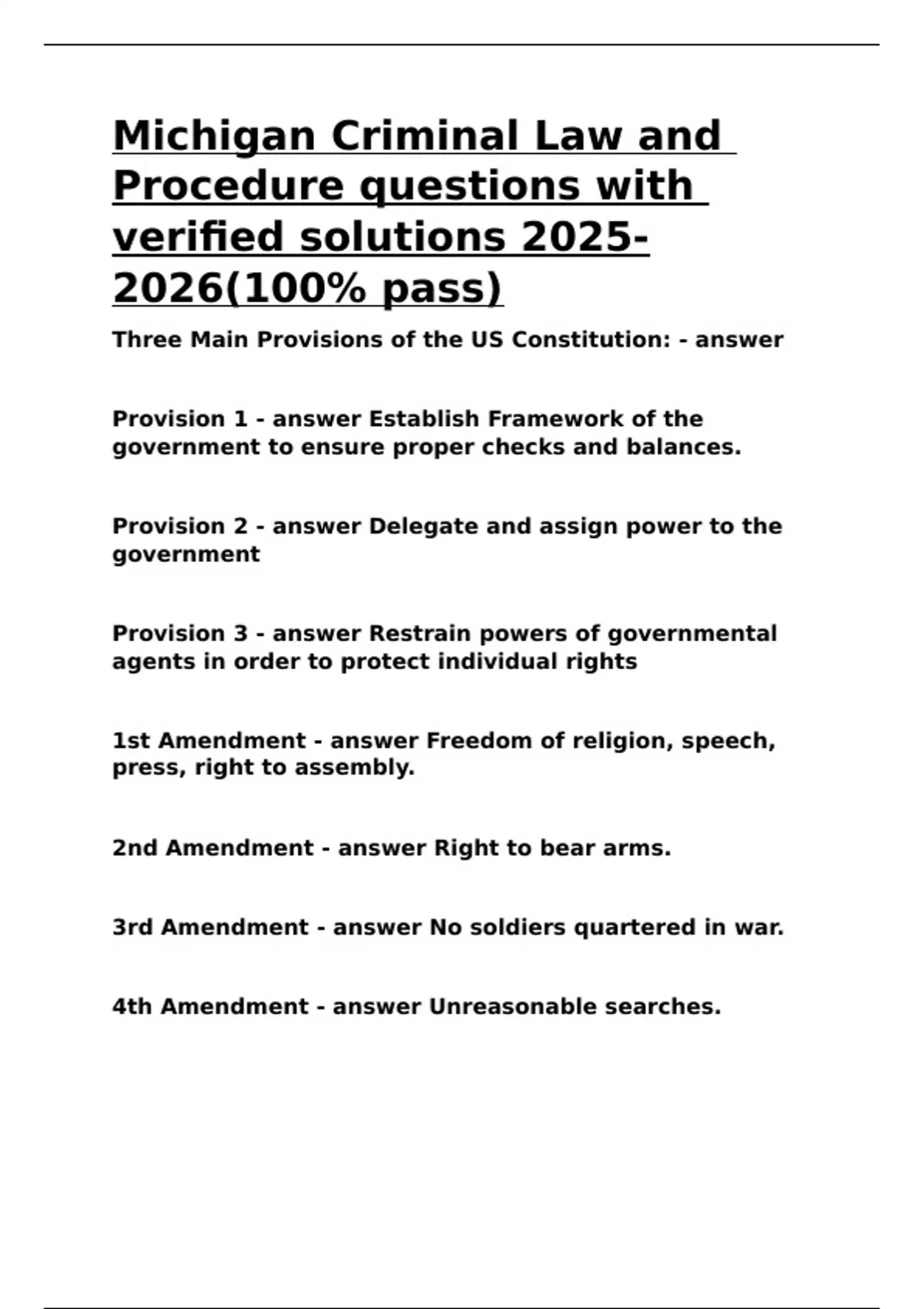 Three Main Provisions of the US Constitution: - answer