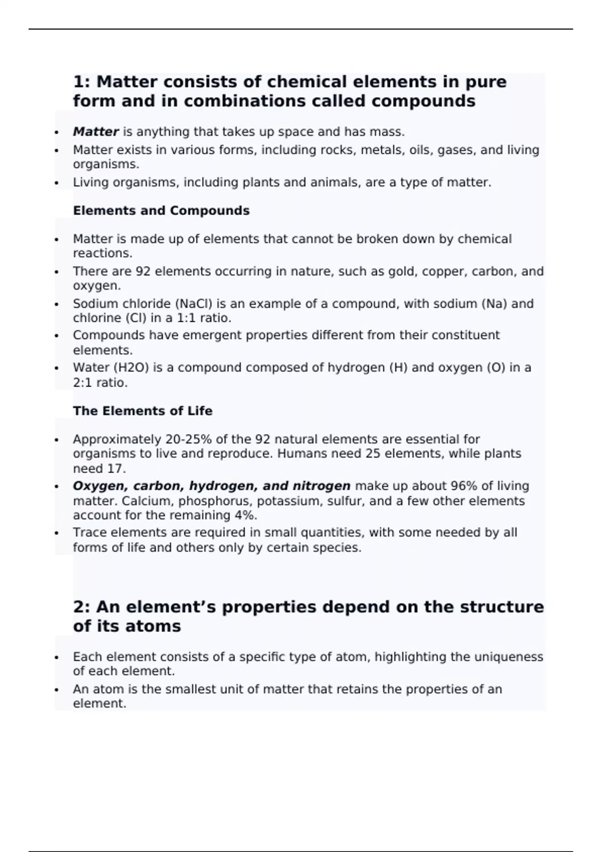 matter. Calcium, phosphorus, potassium, sulfur, and a few other elements