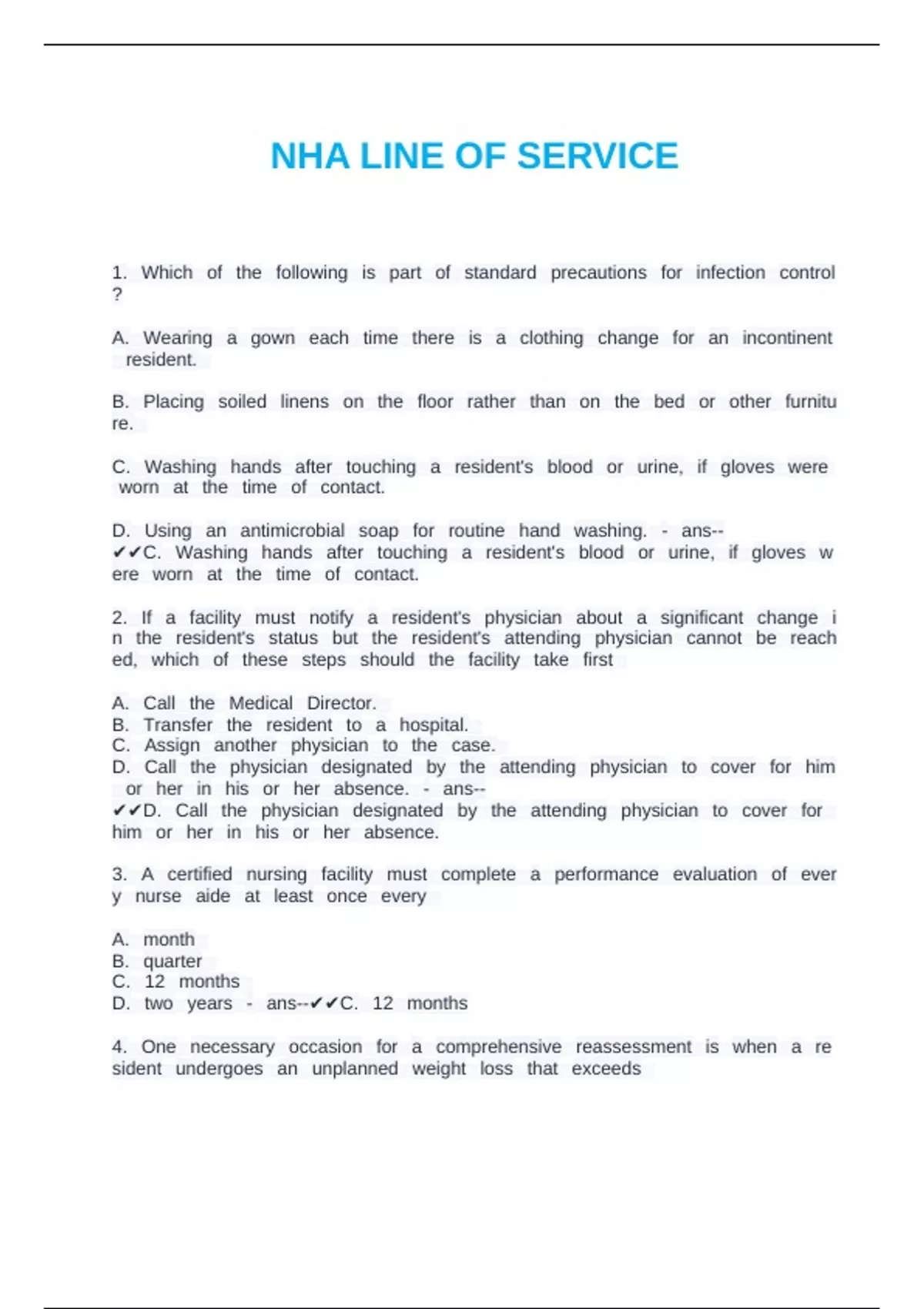 Exam of 14 pages for the course NAB at NAB (NHA LINE OF SERVICE)