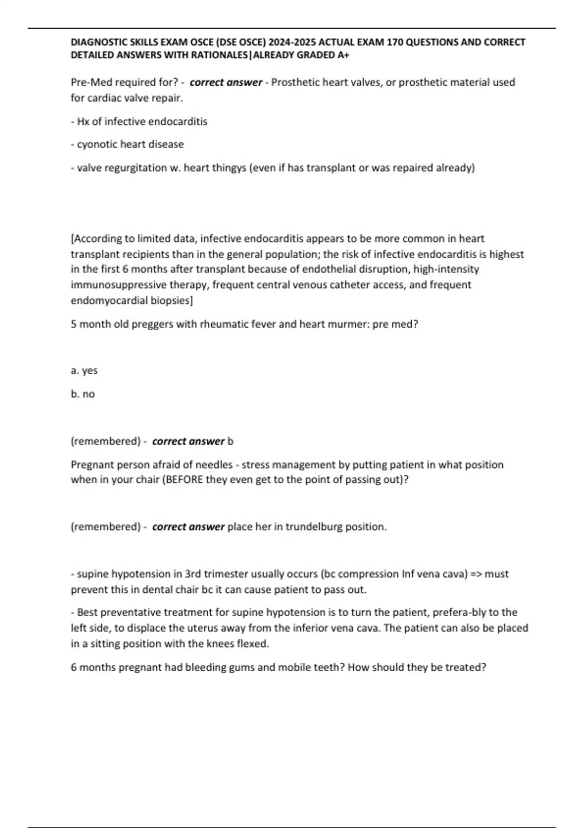 , DIAGNOSTIC SKILLS EXAM OSCE (DSE OSCE) 2024-2025 ACTUAL EXAM 170 QUESTIONS AND CORRECT