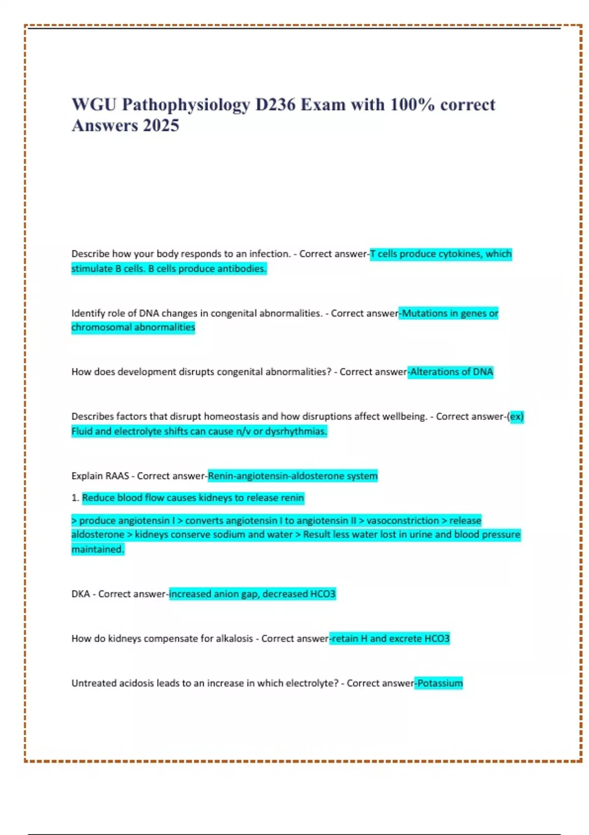 Untreated acidosis leads to an increase in which electrolyte? - Correct answer-Potassium