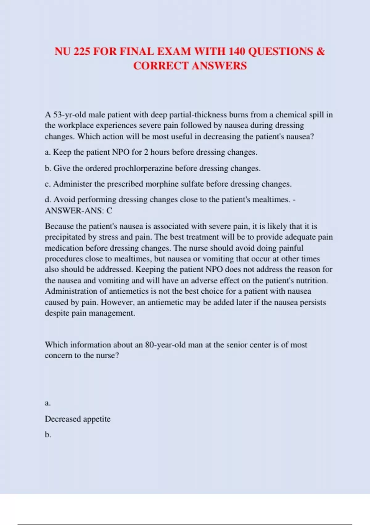 NU 225 FOR FINAL EXAM WITH 140 QUESTIONS &