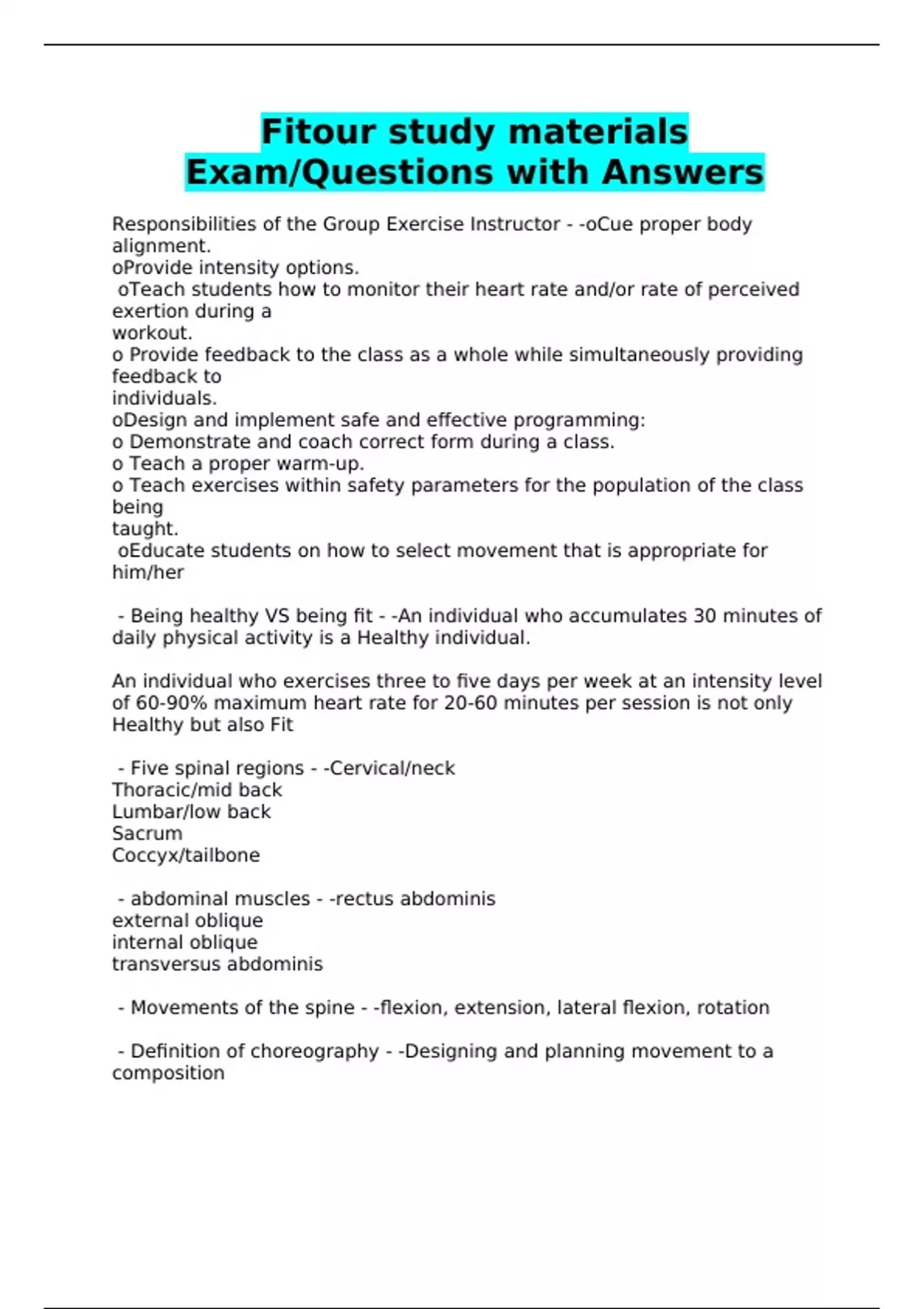 Responsibilities of the Group Exercise Instructor - -oCue proper body