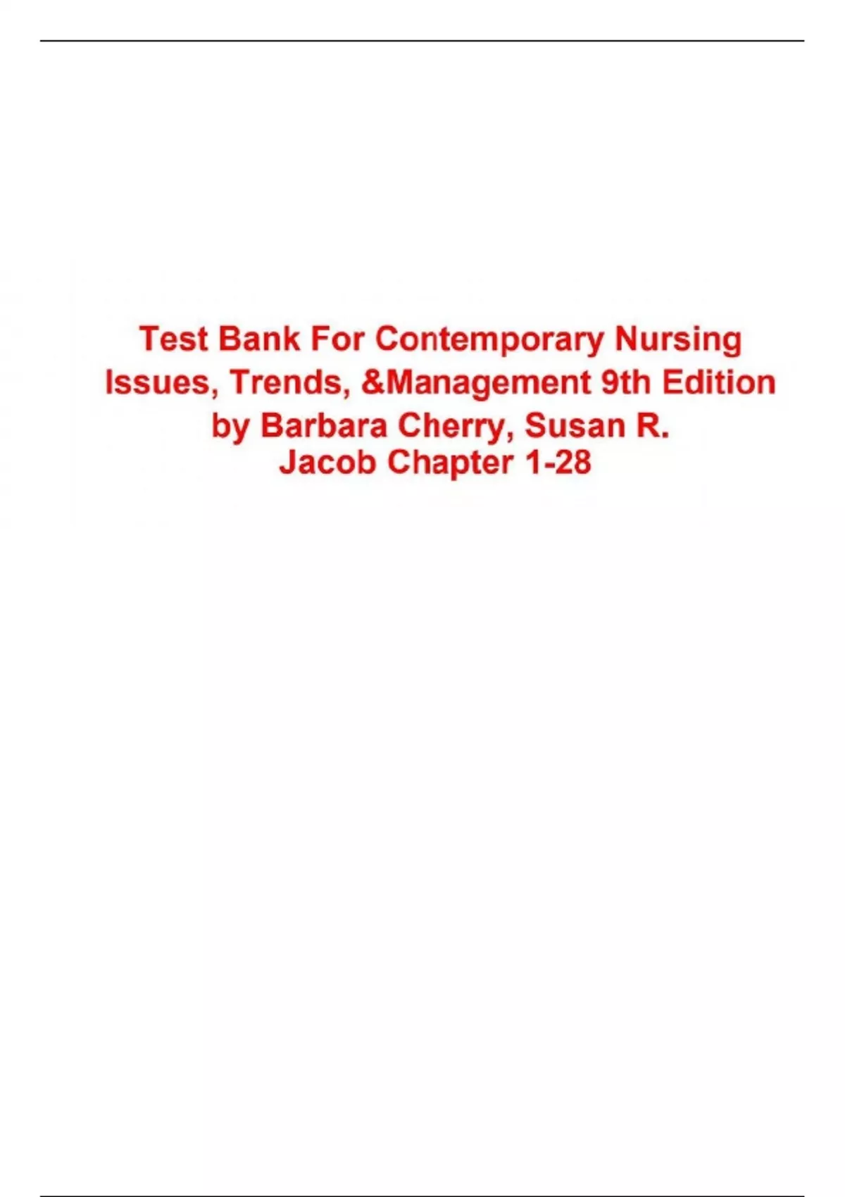 Test Bank For Contemporary Nursing Issues, Trends, &Management 9th Edition by Barbara Cherry, Susan R. Jacob Chapter 1-28