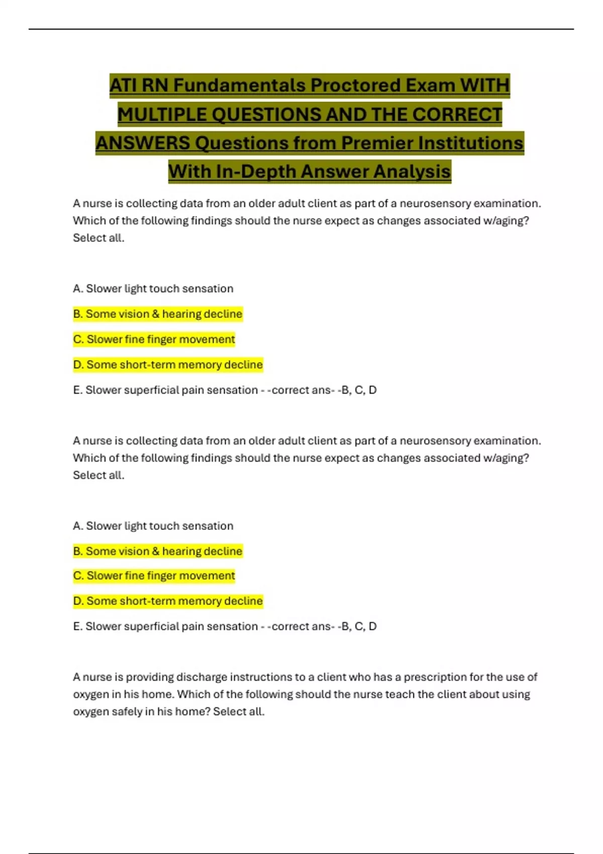 ATI RN Fundamentals Proctored Exam with a Range of Questions and Detailed Correct Answers for In-Depth Exam Review.
