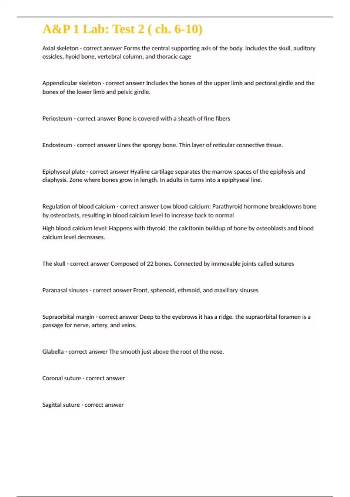 , A&P 1 Lab: Test 2 ( ch. 6-10)