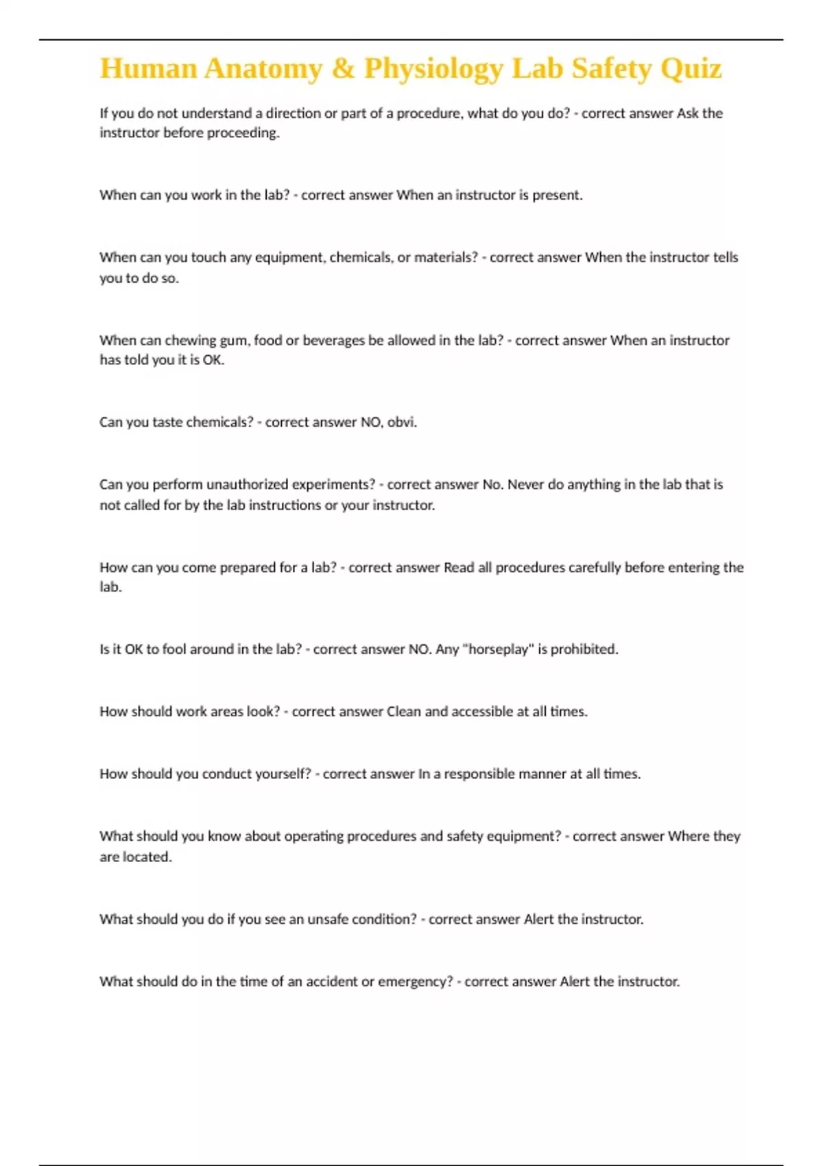 When can you touch any equipment, chemicals, or materials? - correct answer When the instructor tells