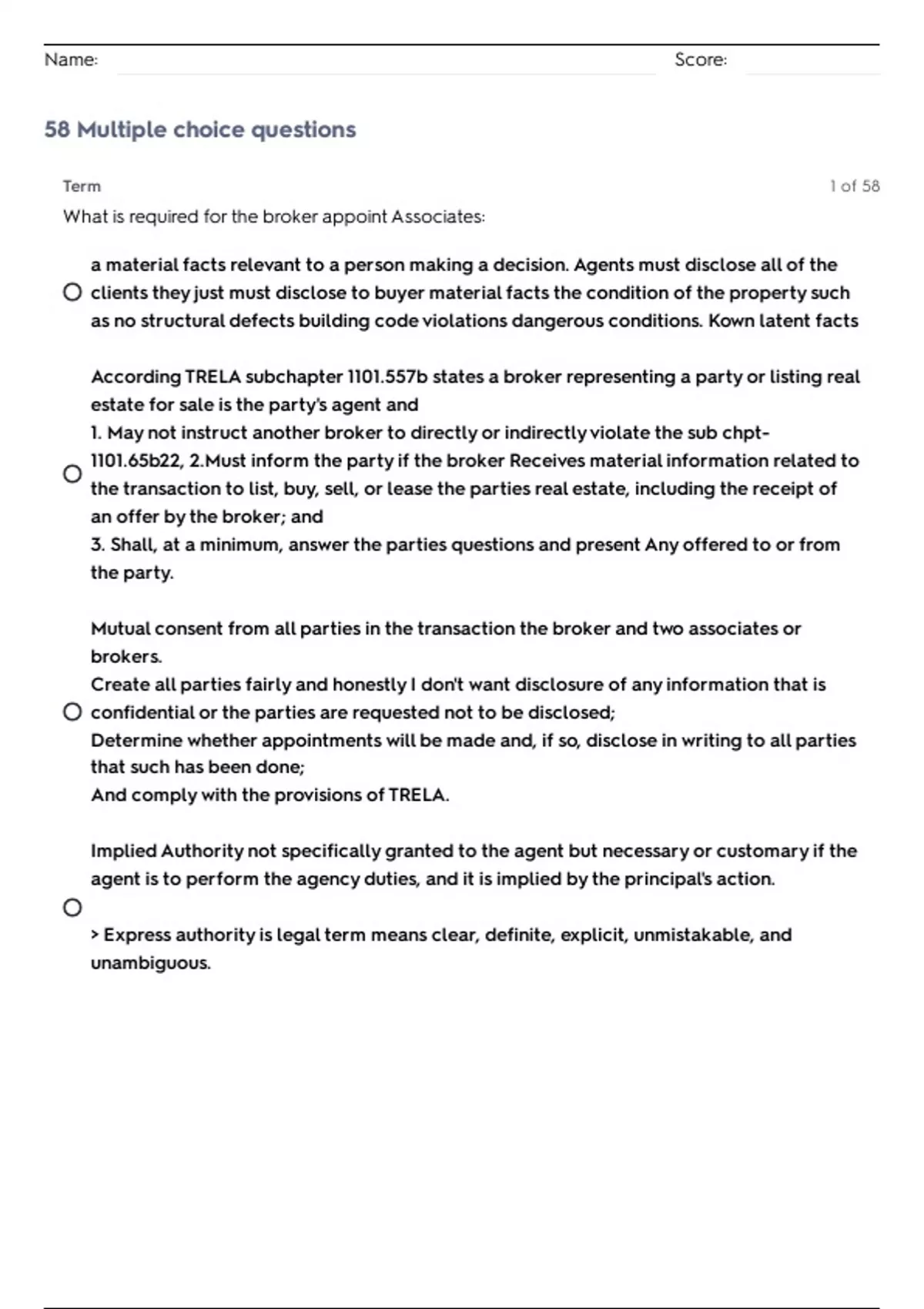 58 Multiple choice questions