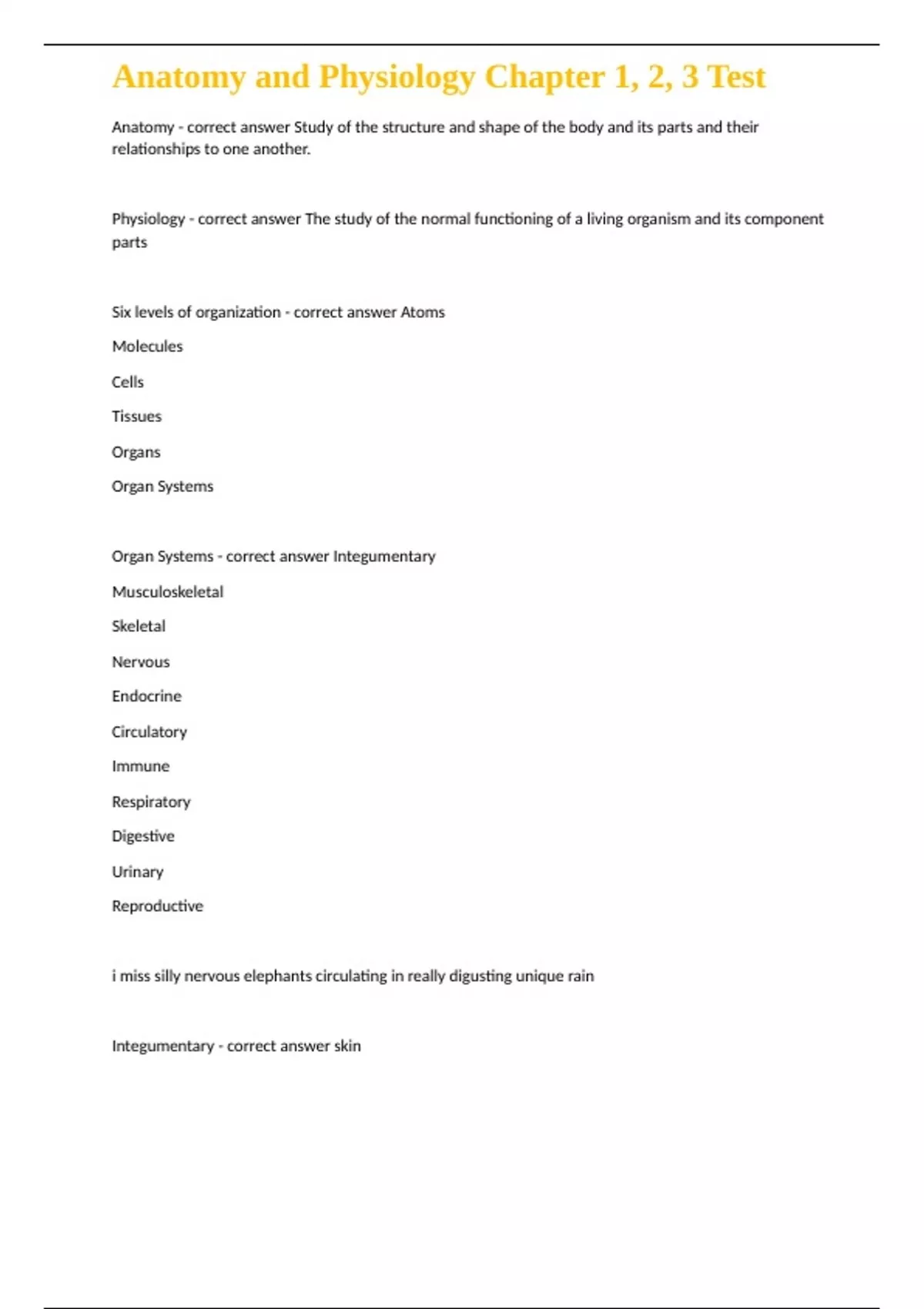 , Anatomy and Physiology Chapter 1, 2, 3 Test
