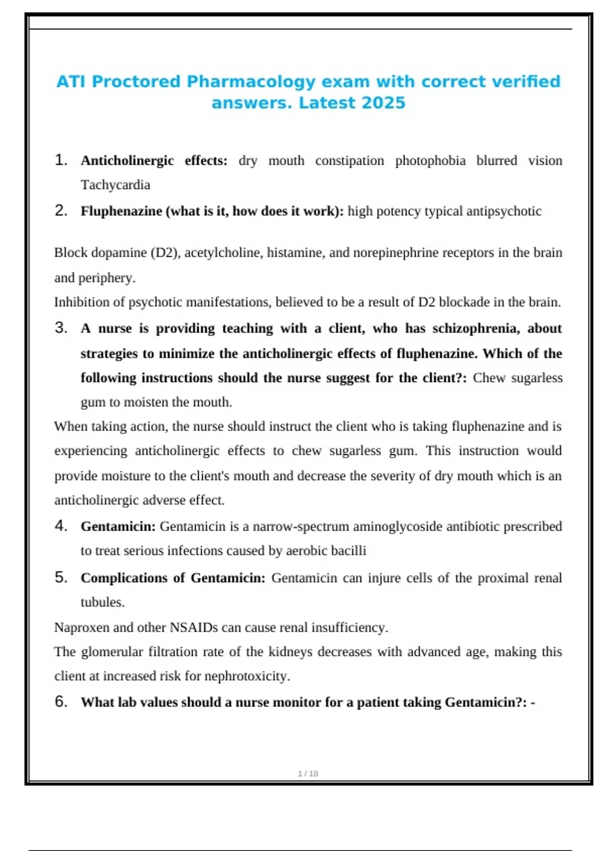 ATI Proctored Pharmacology exam with correct verified answers. Latest 2025 A thorough, easy-to-use and understand study plan using a comprehensive study guide and in-depth online tutorials to test knowledge and guide remediation.