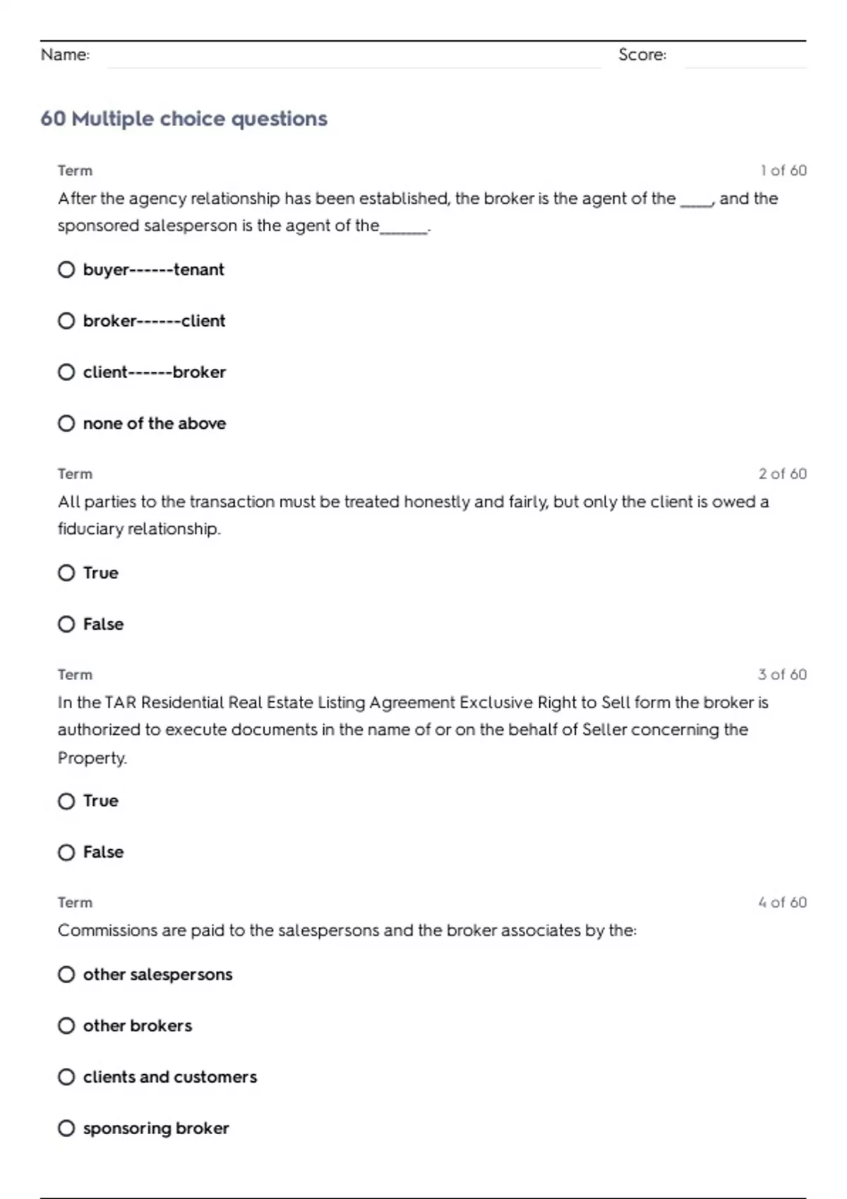 In the TAR Residential Real Estate Listing Agreement Exclusive Right to Sell form the broker is