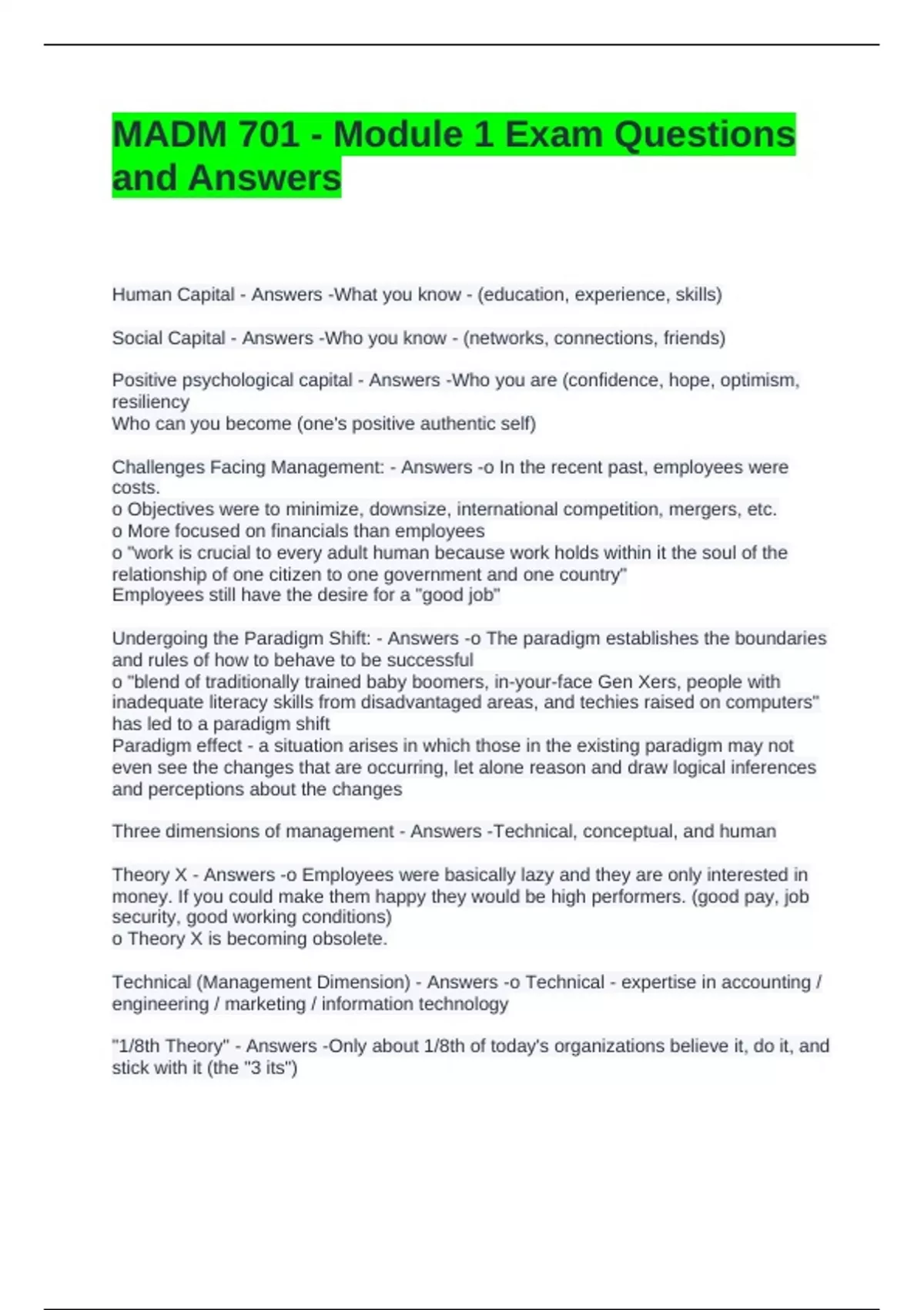 MADM 701 - Module 1 Exam Questions
