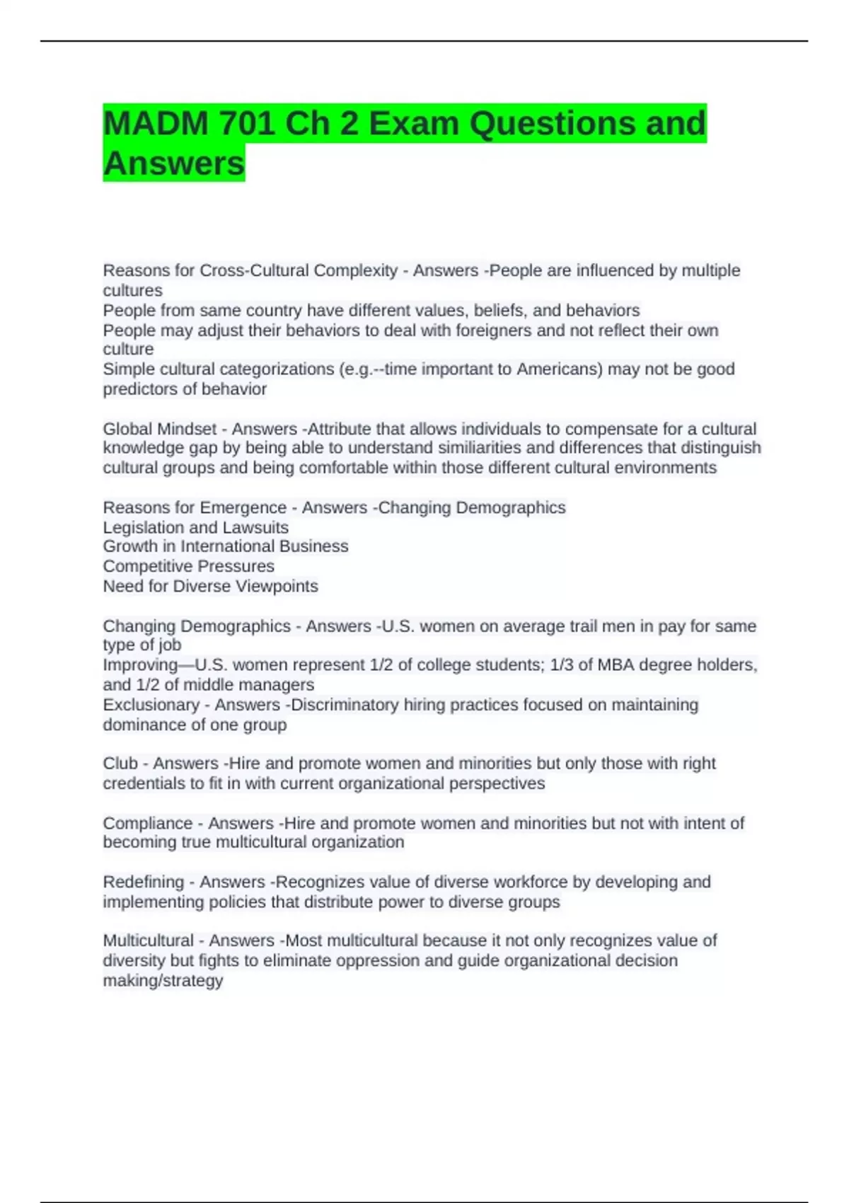 MADM 701 Ch 2 Exam Questions and Answers-Graded A