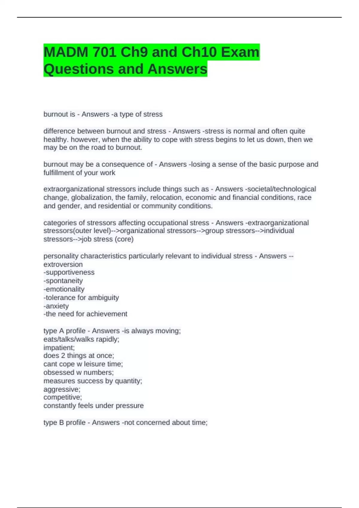 type B profile - Answers -not concerned about time;