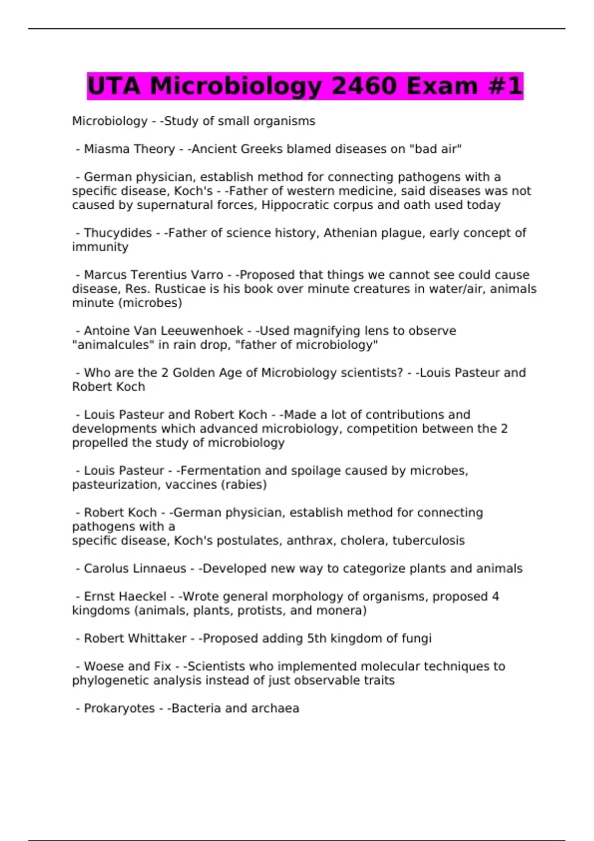 UTA Microbiology 2460 Exam #1
