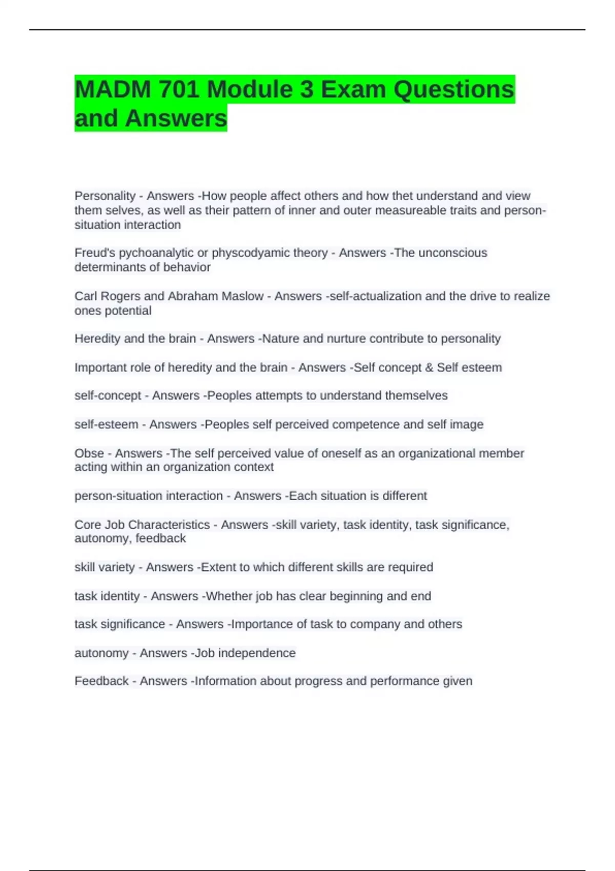 Obse - Answers -The self perceived value of oneself as an organizational member