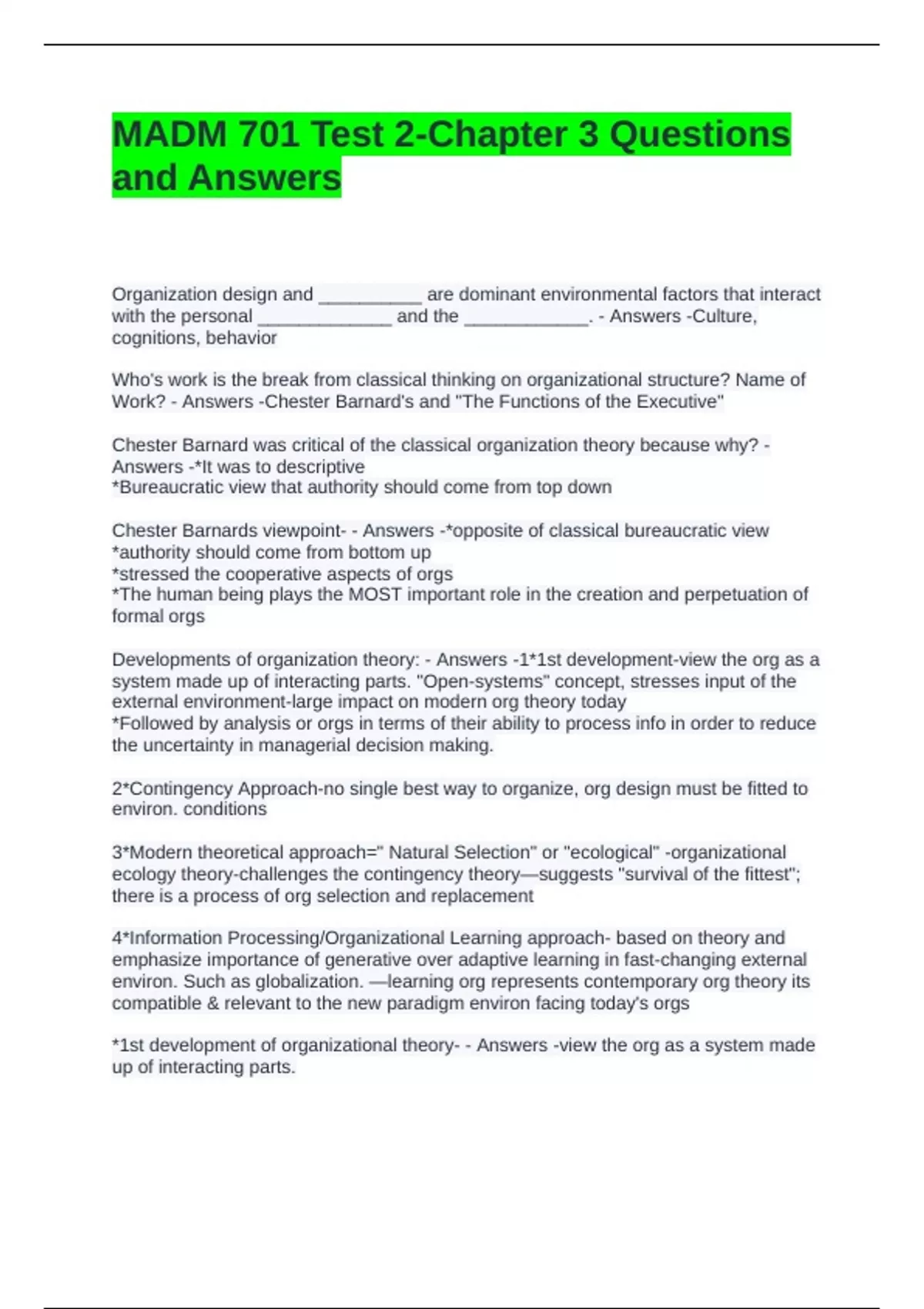 Developments of organization theory: - Answers -1*1st development-view the org as a