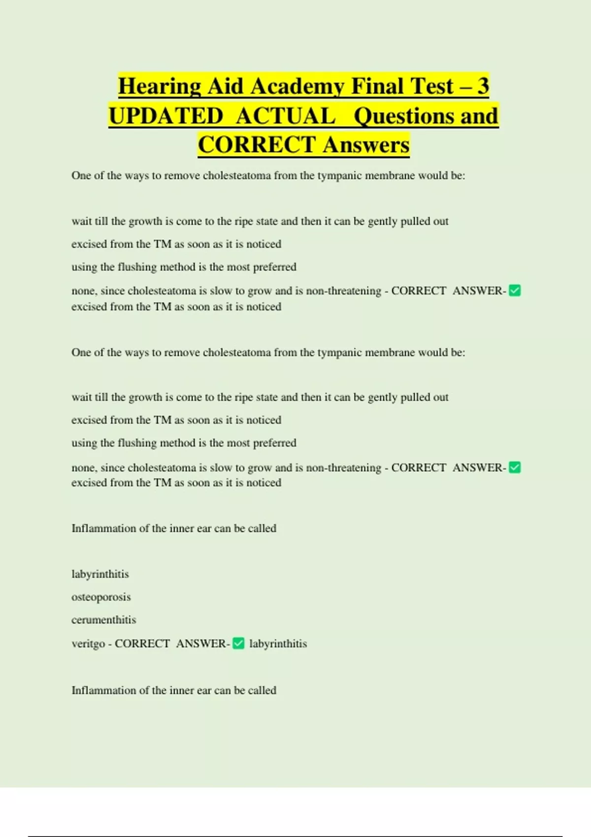 Hearing Aid Academy Final Test – 3 UPDATED ACTUAL Questions and CORRECT Answers