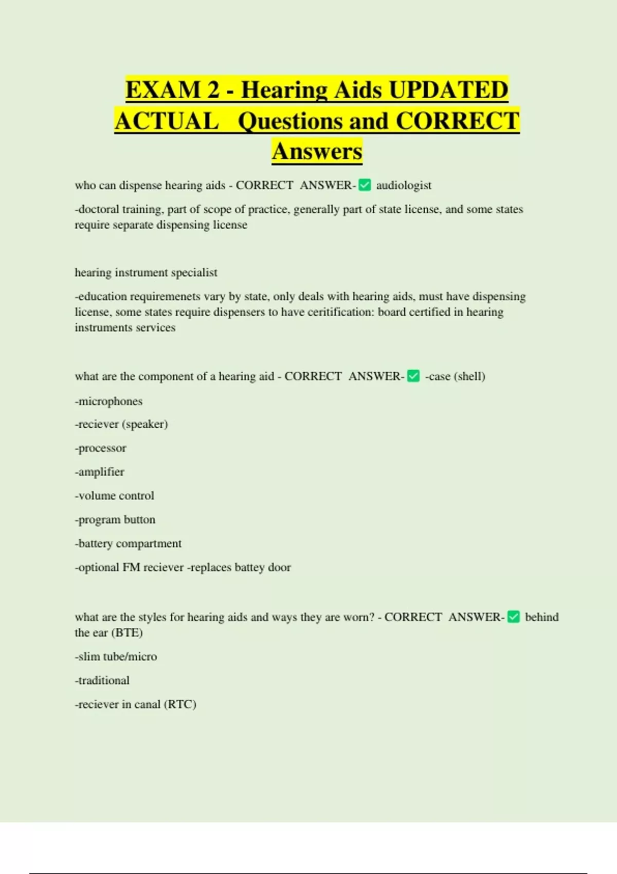 what are the component of a hearing aid - CORRECT ANSWER- -case (shell)