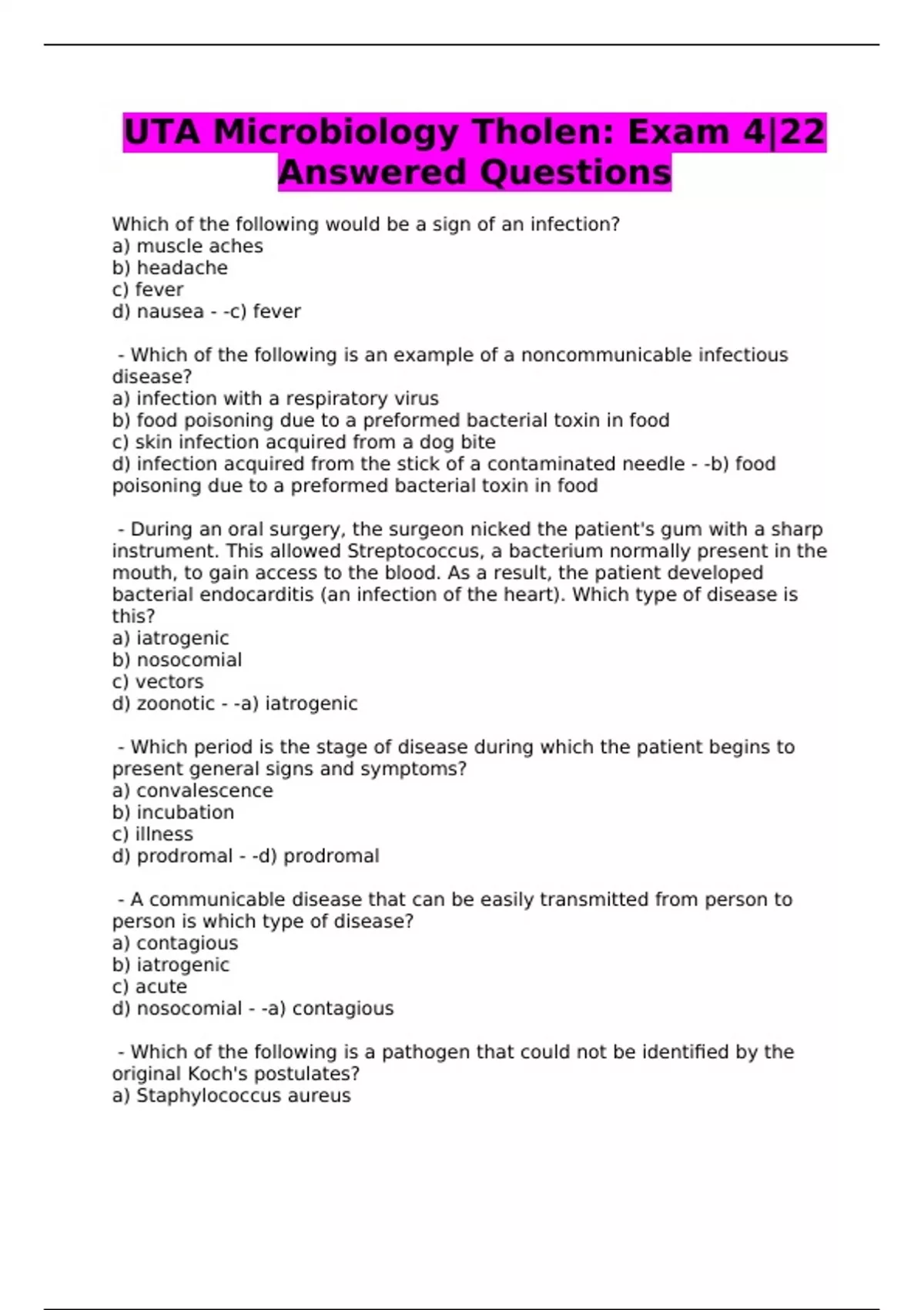d) nosocomial - -a) contagious