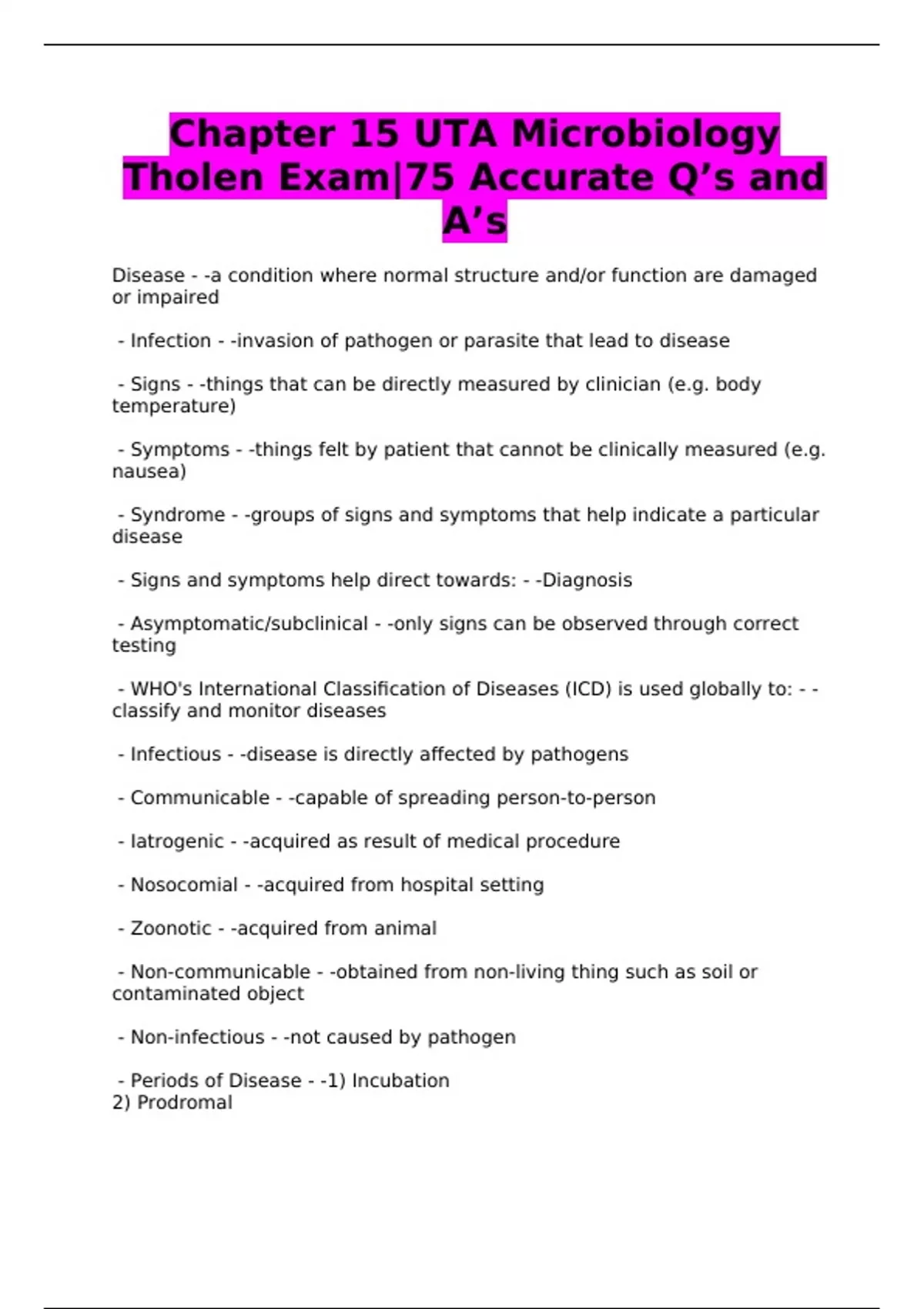 - Periods of Disease - -1) Incubation