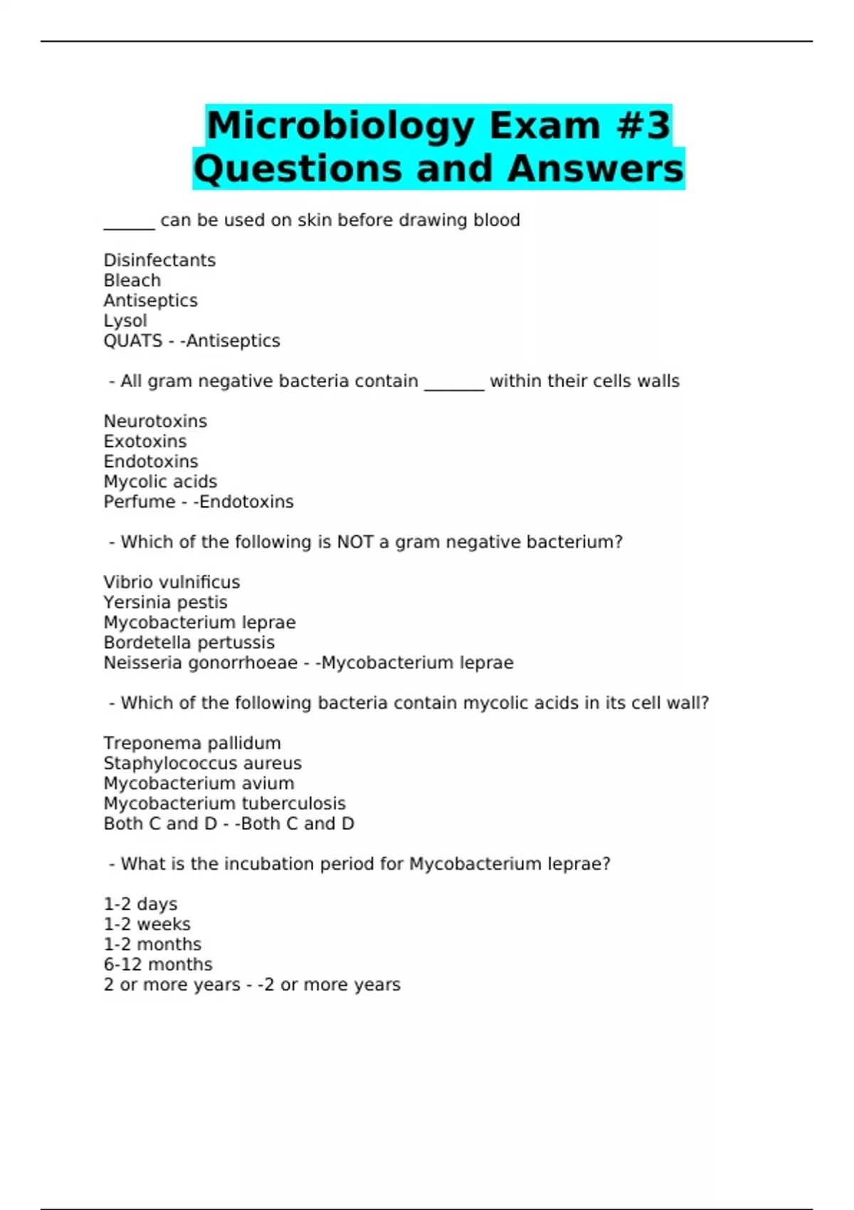 Neisseria gonorrhoeae - -Mycobacterium leprae