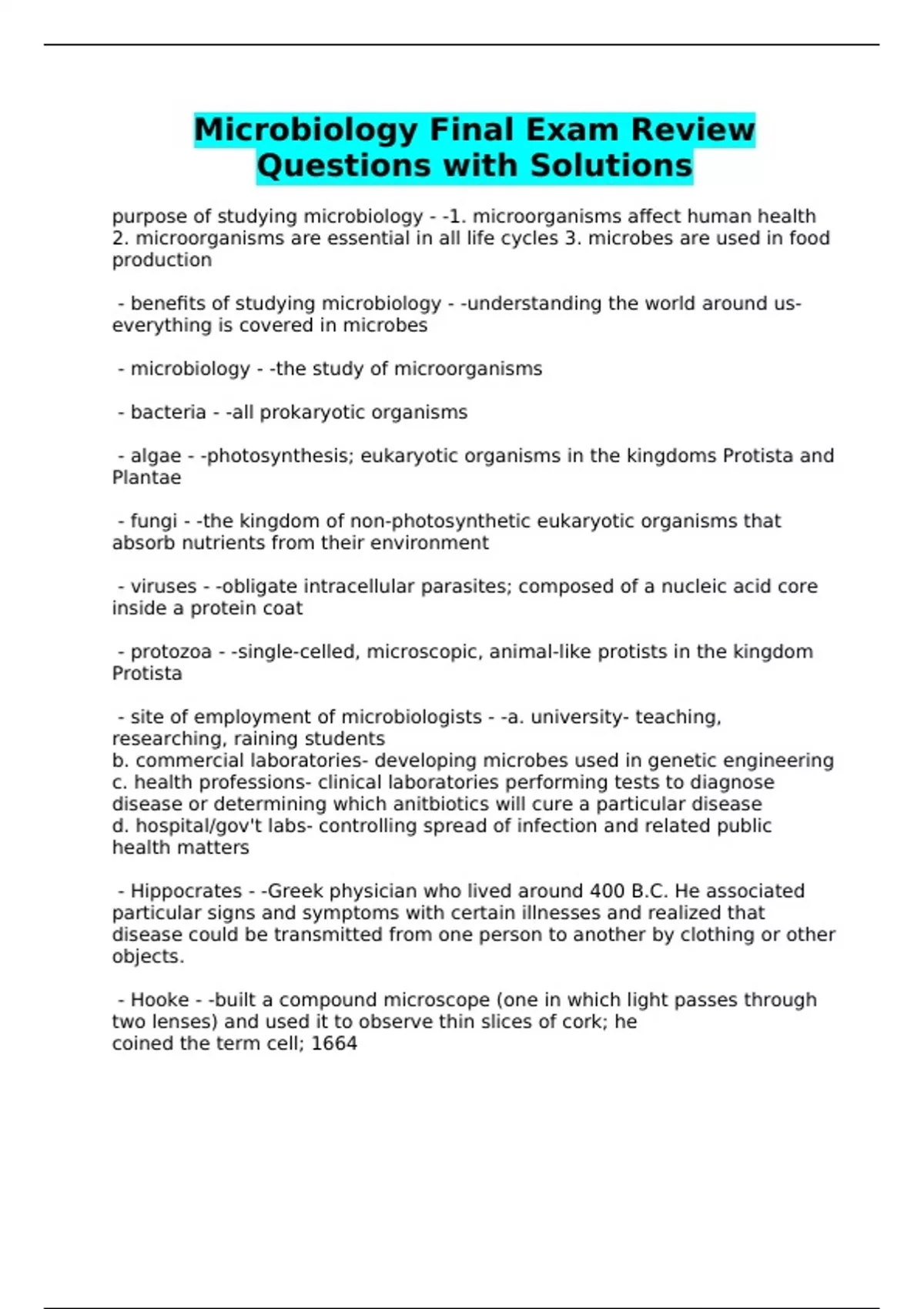 Microbiology Final Exam Review