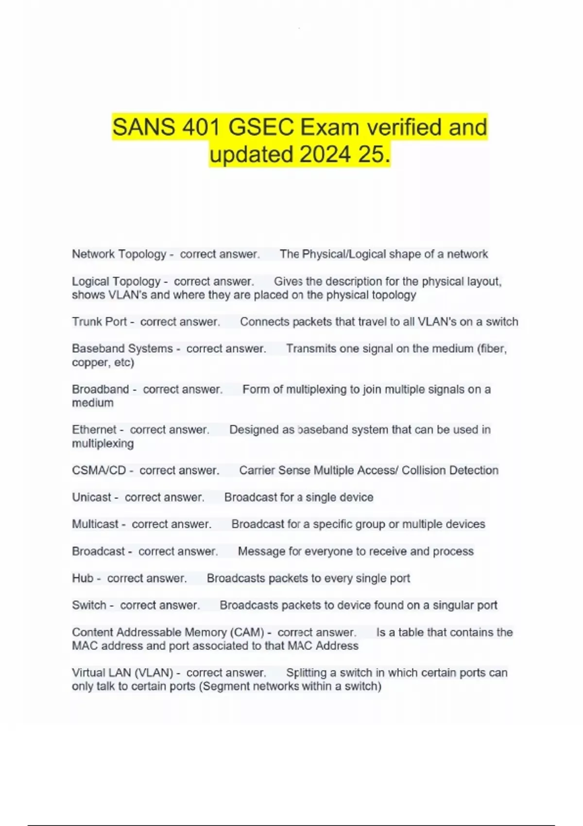 SANS 401 GSEC Exam verified and updated 2024/25.