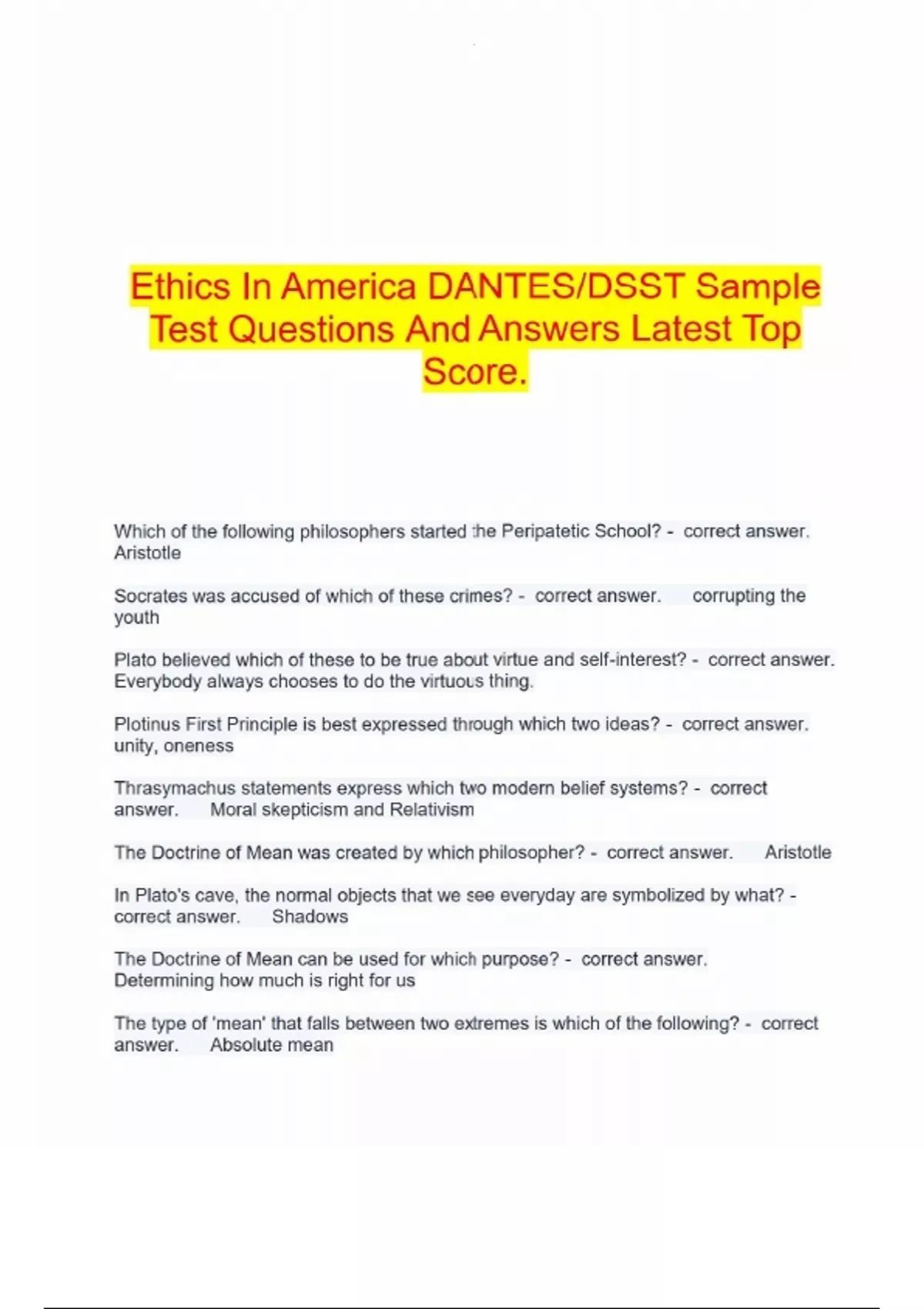 Ethics In America DANTES/DSST Sample Test Questions And Answers Latest Top Score.Ethics In America DANTES/DSST Sample Test Questions And Answers Latest Top Score.Ethics In America DANTES/DSST Sample Test Questions And Answers Latest Top Score.Ethics In America DANTES/DSST Sample Test Questions And Answers Latest Top Score.