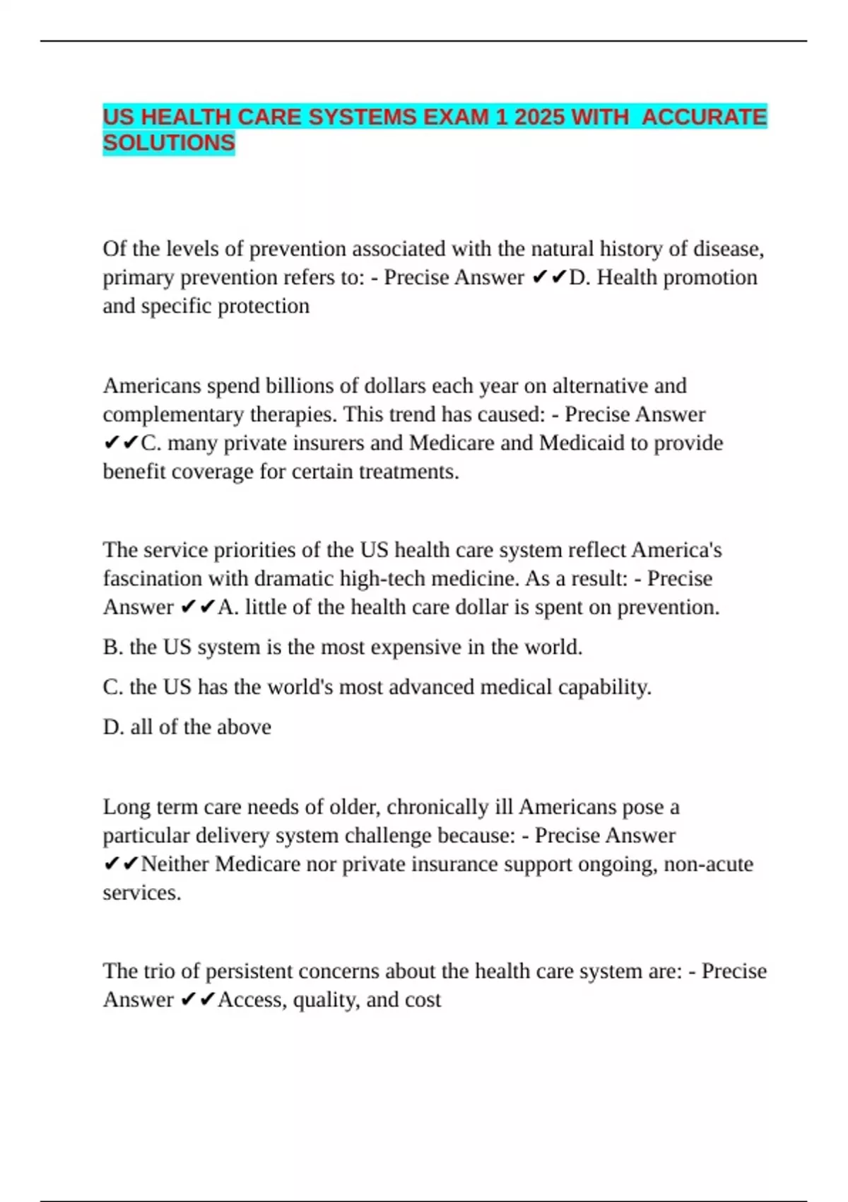 US HEALTH CARE SYSTEMS EXAM 1 2025 WITH ACCURATE SOLUTIONS