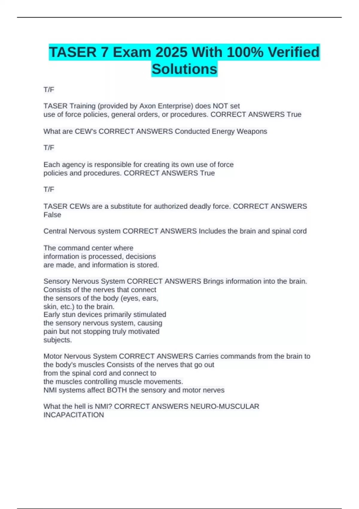 TASER 7 Exam 2025 With 100% Verified Solutions