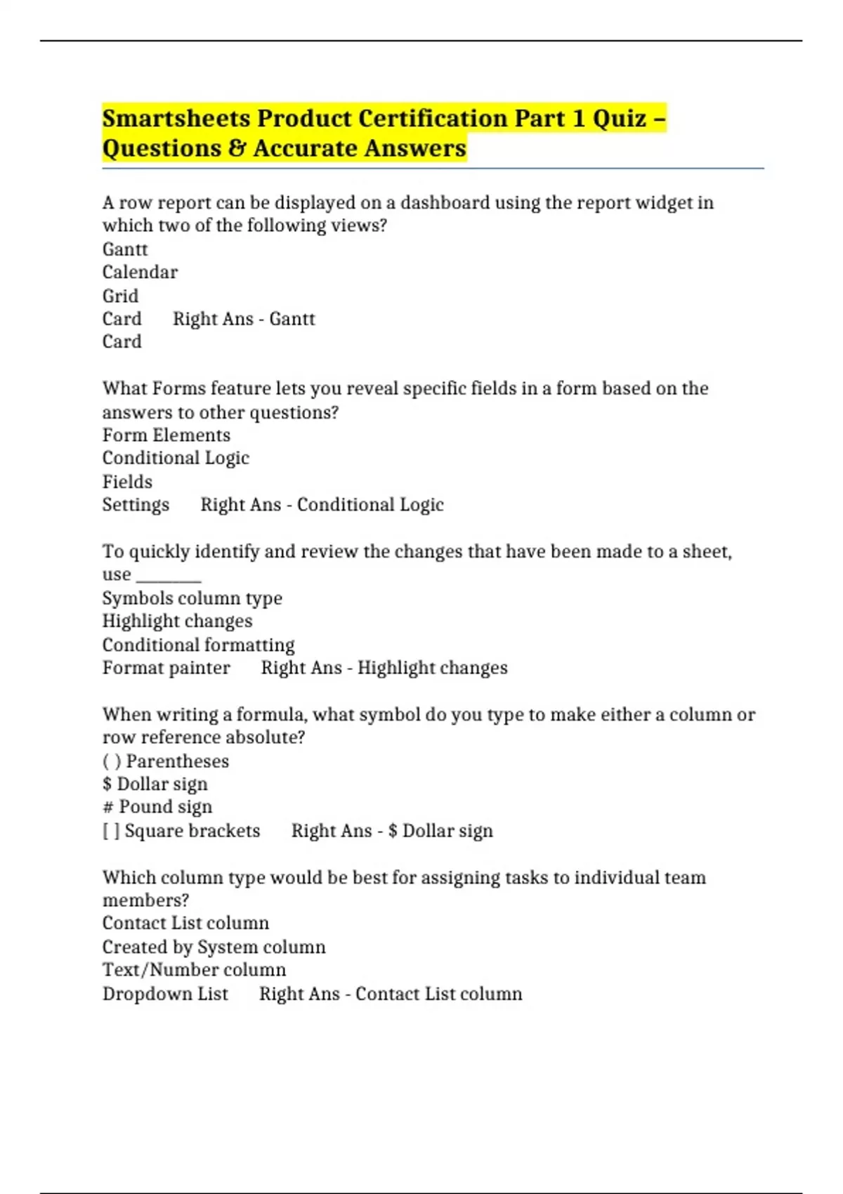 Smartsheets Product Certification Part 1 Quiz – Questions & Accurate Answers