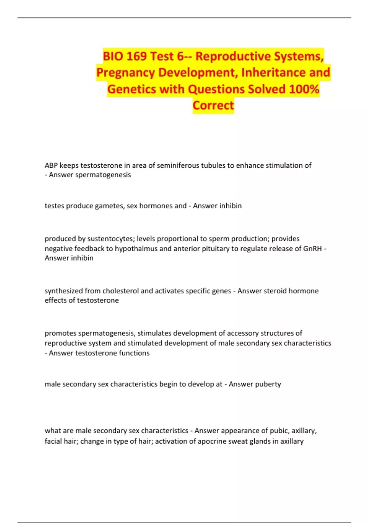 - Answer testosterone functions