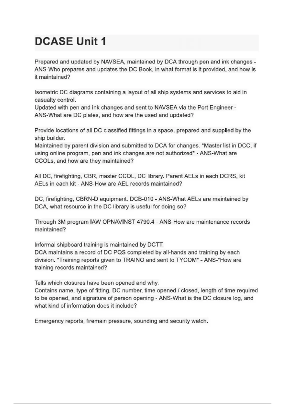 DCASE Unit 1 questions and answers