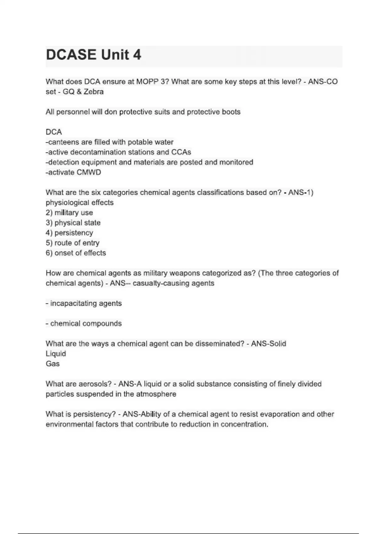 DCASE Unit 4 questions and answers