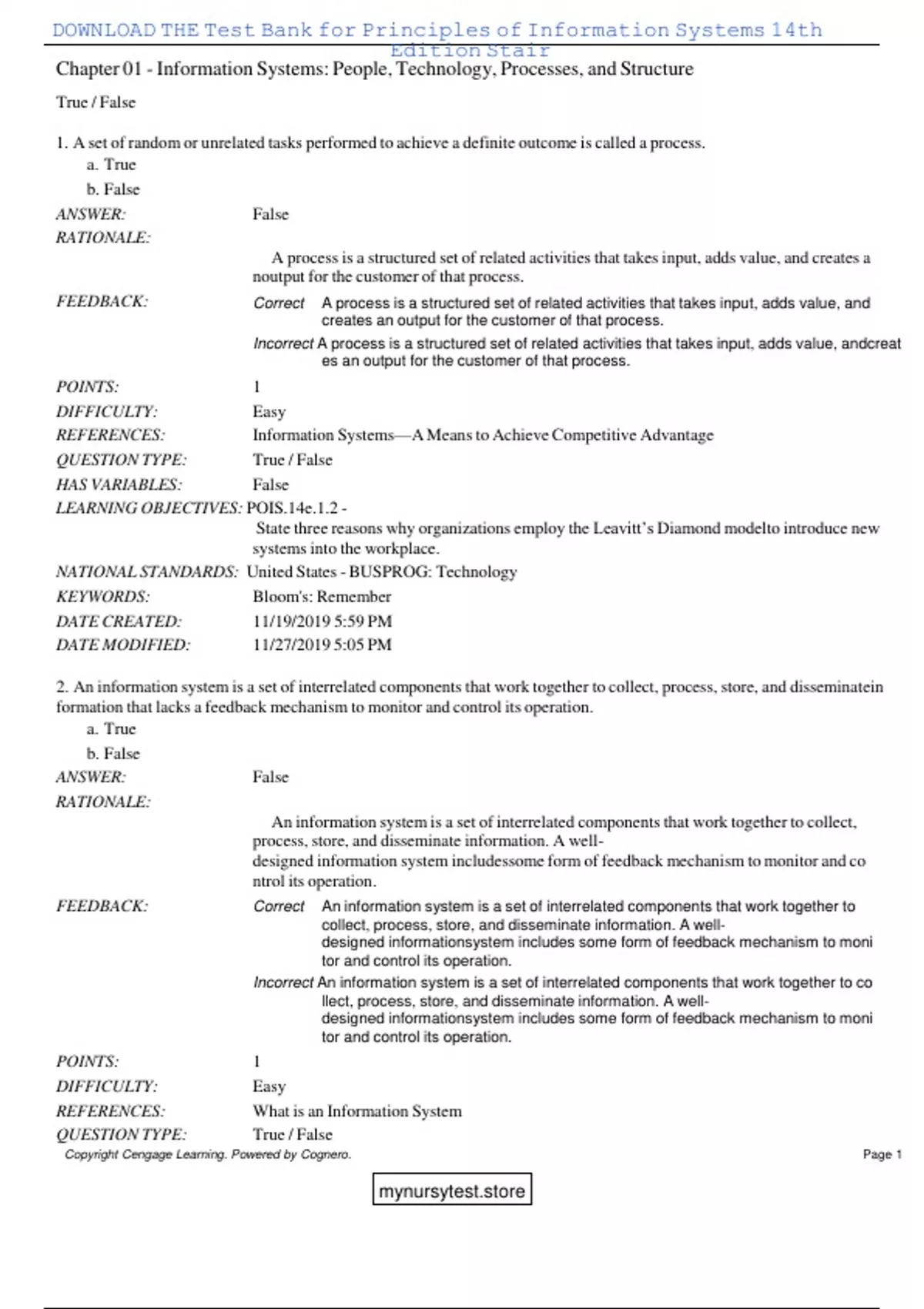 , DOWNLOAD THE Test Bank for Principles of Information Systems 14th
