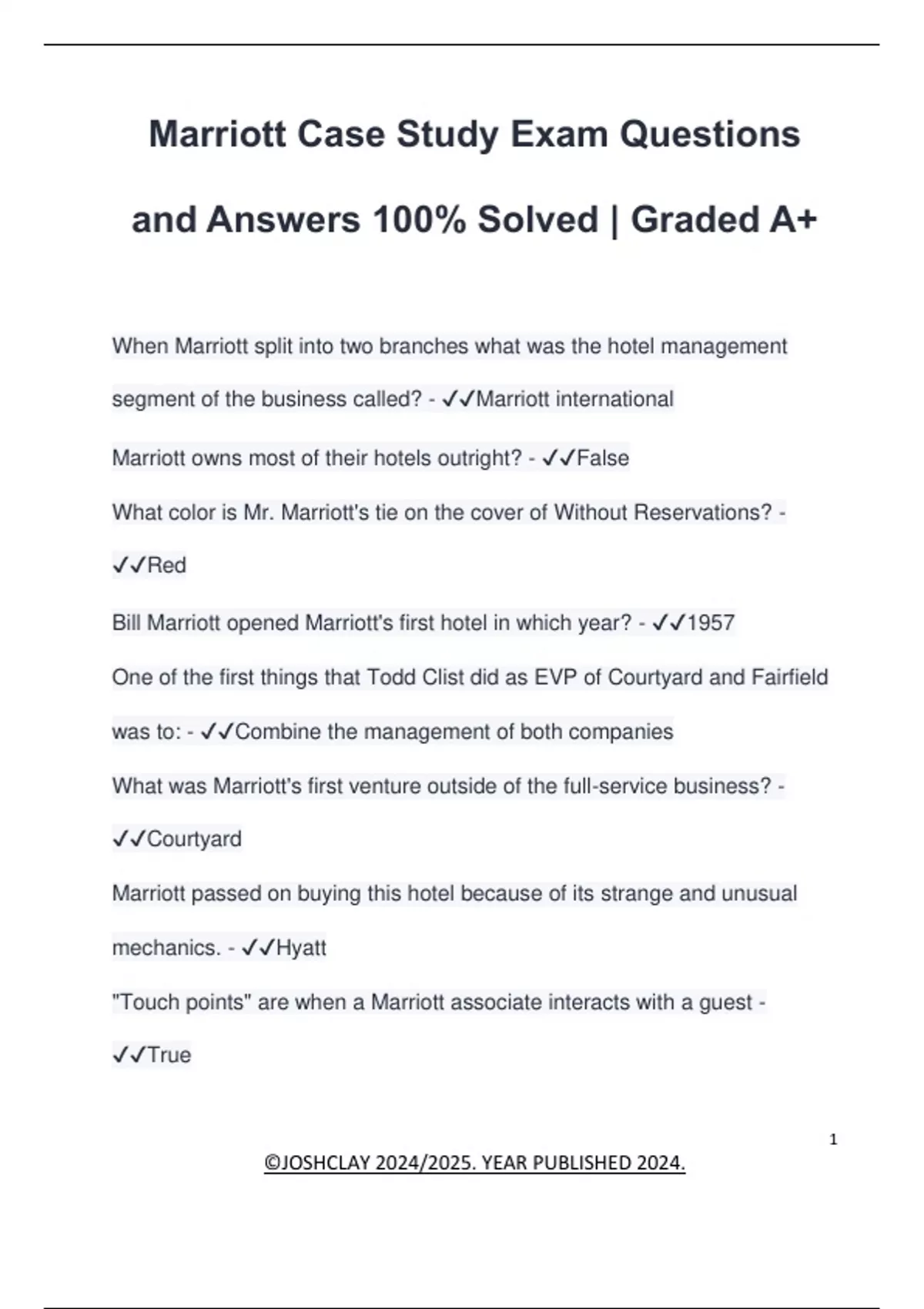 Marriott owns most of their hotels outright? - ✔✔False