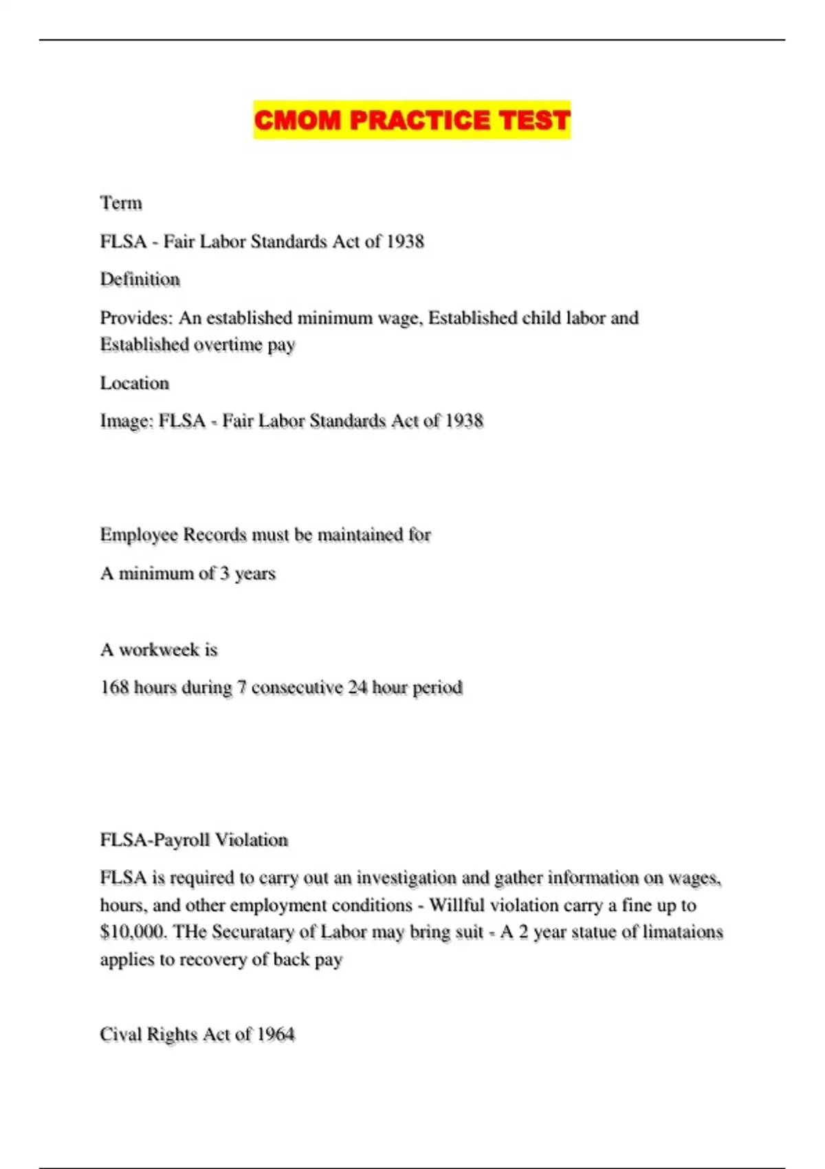 CMOM PRACTICE TEST
