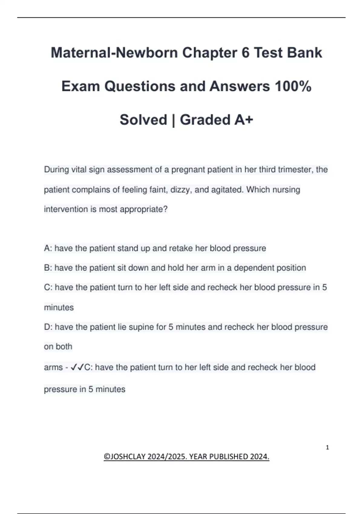 arms - ✔✔C: have the patient turn to her left side and recheck her blood