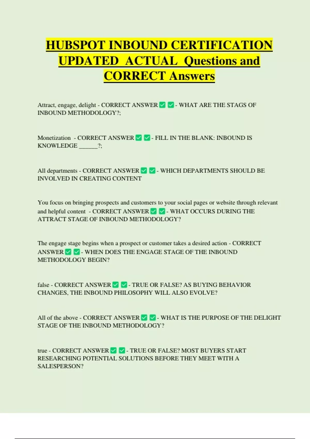 UPDATED ACTUAL Questions and