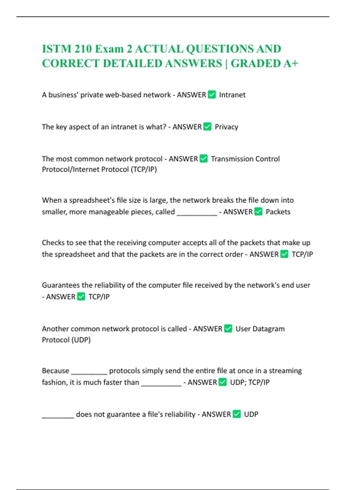 ISTM 210 Exam 2 ACTUAL QUESTIONS AND