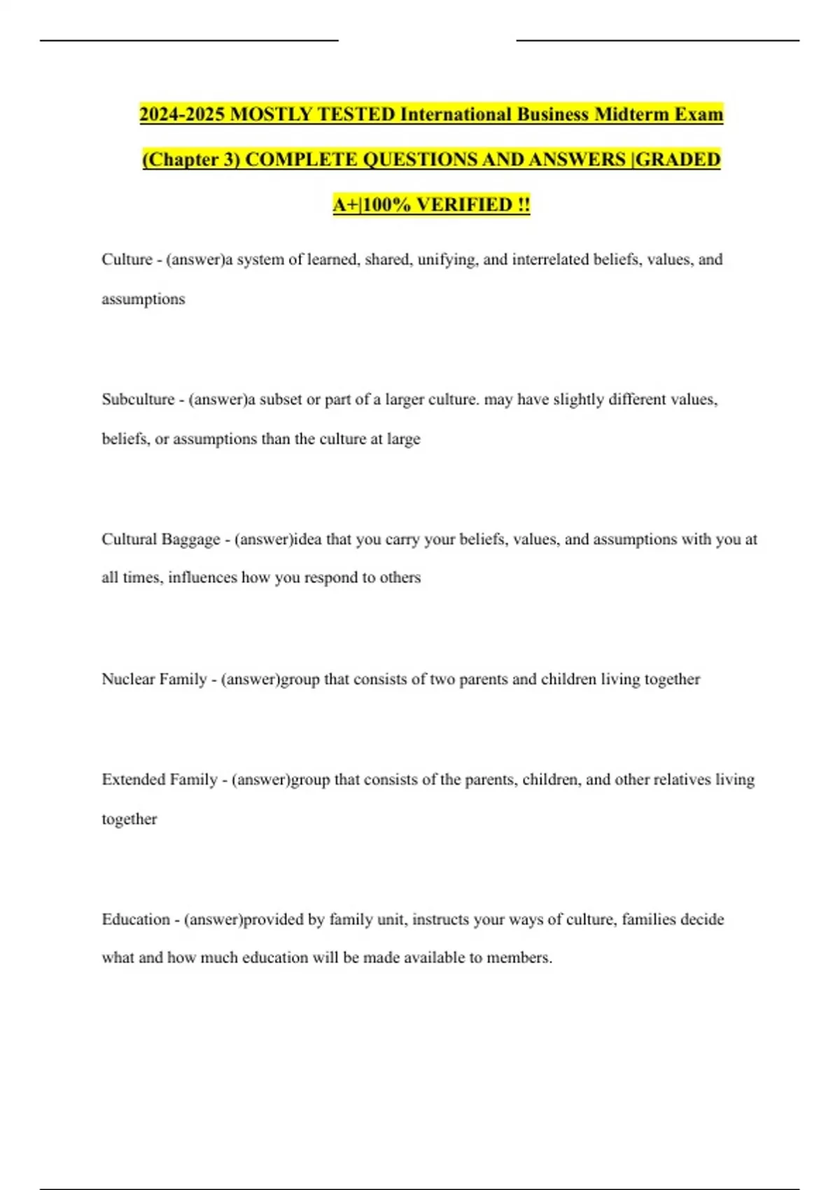 MOSTLY TESTED International Business Midterm Exam (Chapter 3) COMPLETE QUESTIONS AND ANSWERS |GRADED A+|100% VERIFIED !!