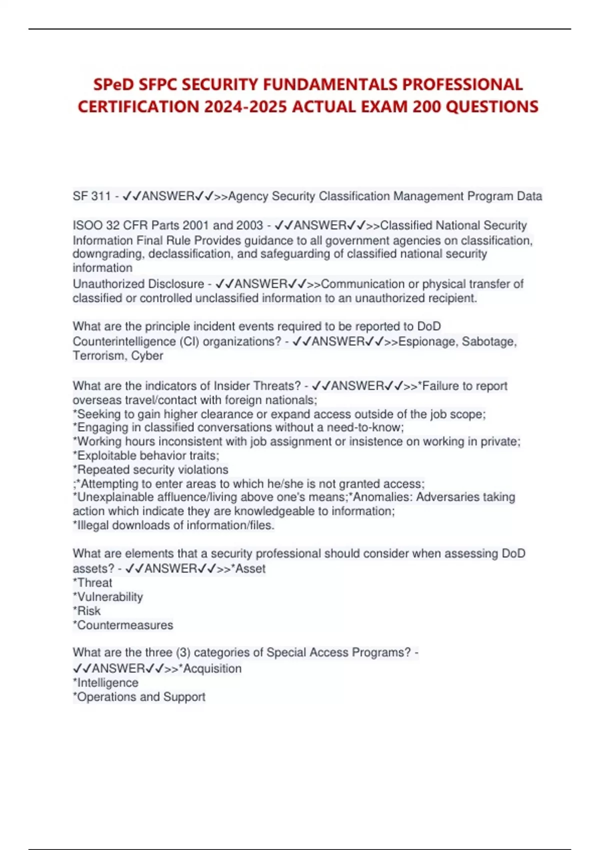 DoD Instruction 5200.01 - ✔✔ANSWER✔✔>>Information Security Program and
